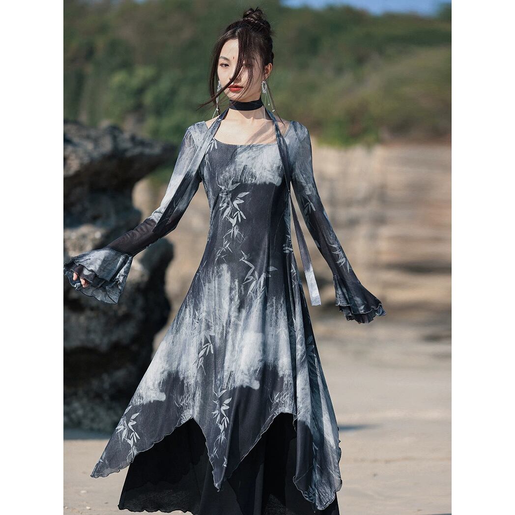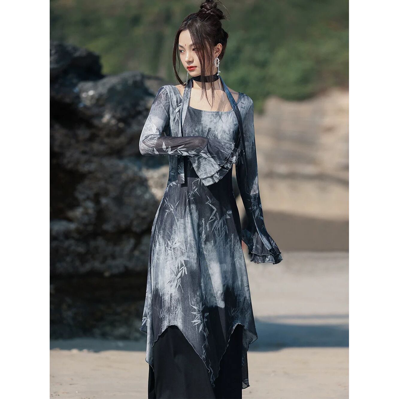 【之x大青龍肆】★ワンピース★プリント チャイナ 中国ファッション ブルー