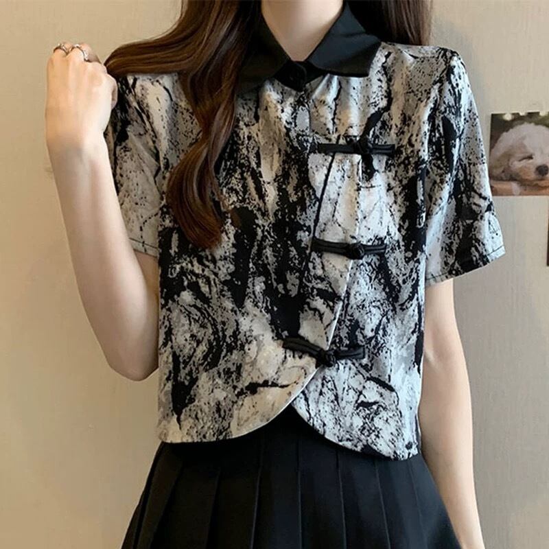 【之】★シャツ★ブラック 唐装 結びボタン レディース服 チャイナ風