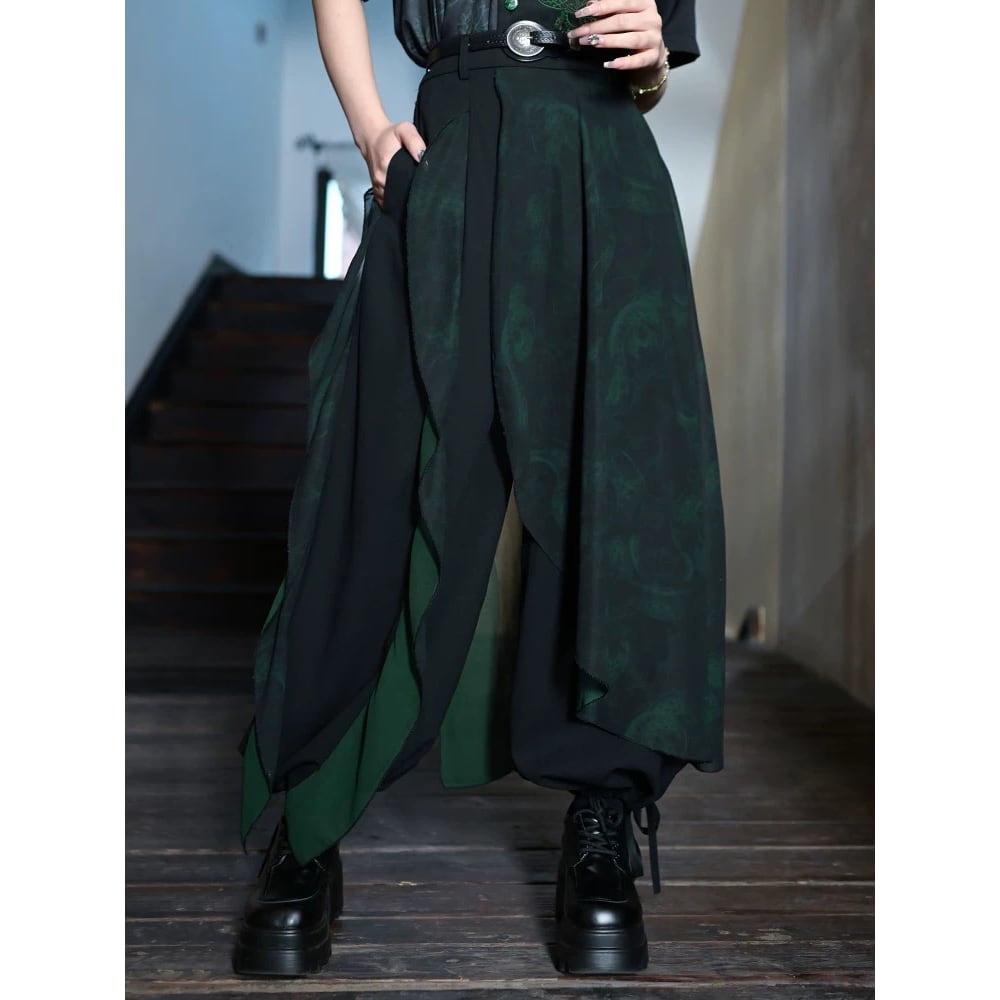 【之x古怪舎】★ズボン・昇卿★グリーン ワイドパンツ キュロット チャイナ風 中国ファッション