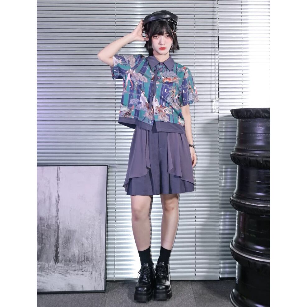 【之x古怪舎】★シャツ/キュロットスカート・幻世集★パープル チャイナ風 中国ファッション プリント