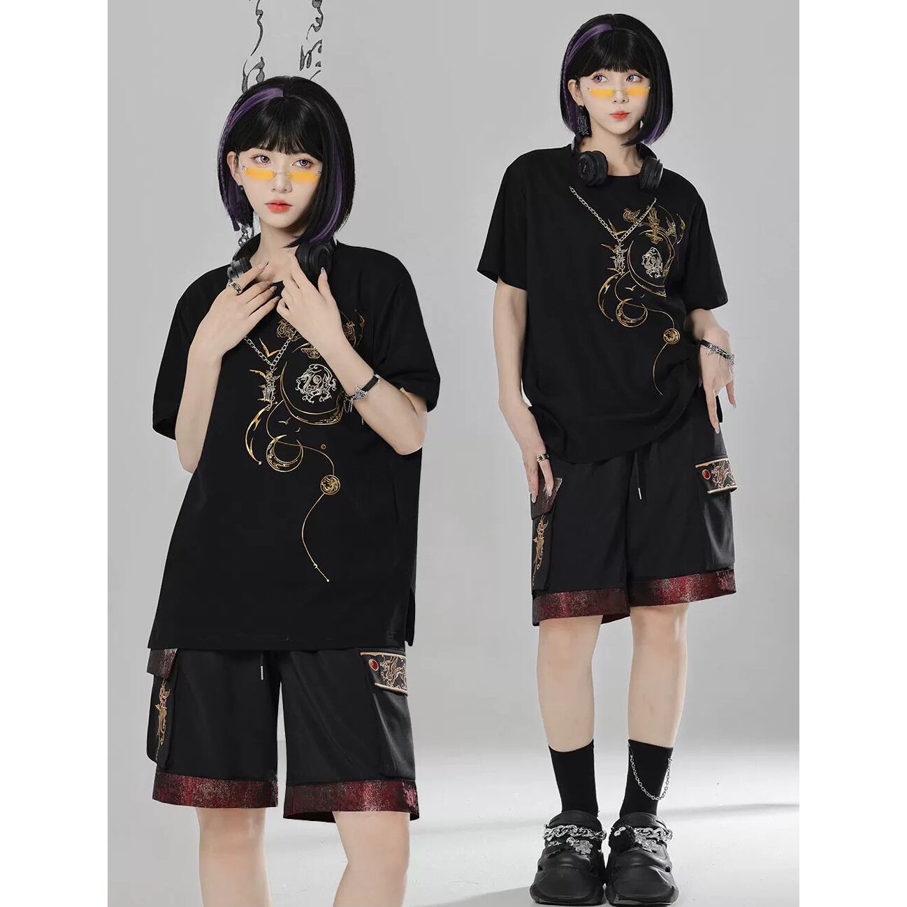 【之x卿堂】★Tシャツ★ブラック 刺繍 チャイナ 学院 男女兼用 デザイン