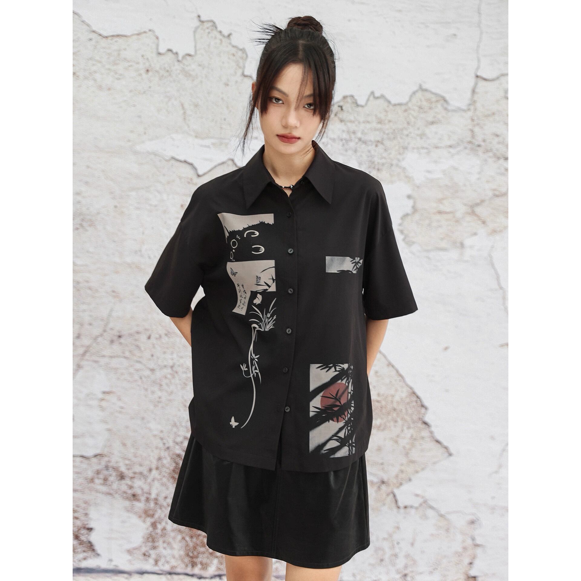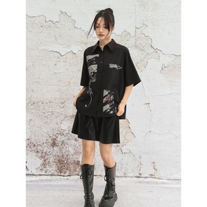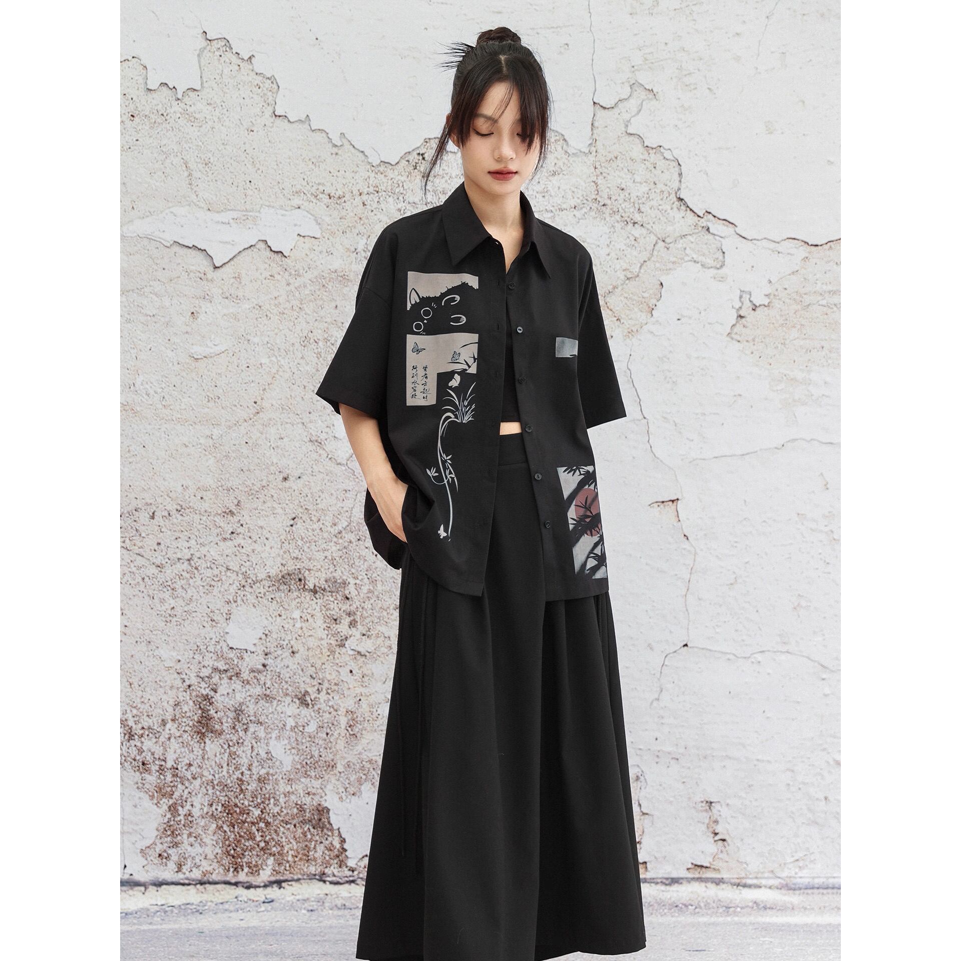 【之x大青龍肆】★シャツ★カジュアル ブラック 中国ファッション プリント