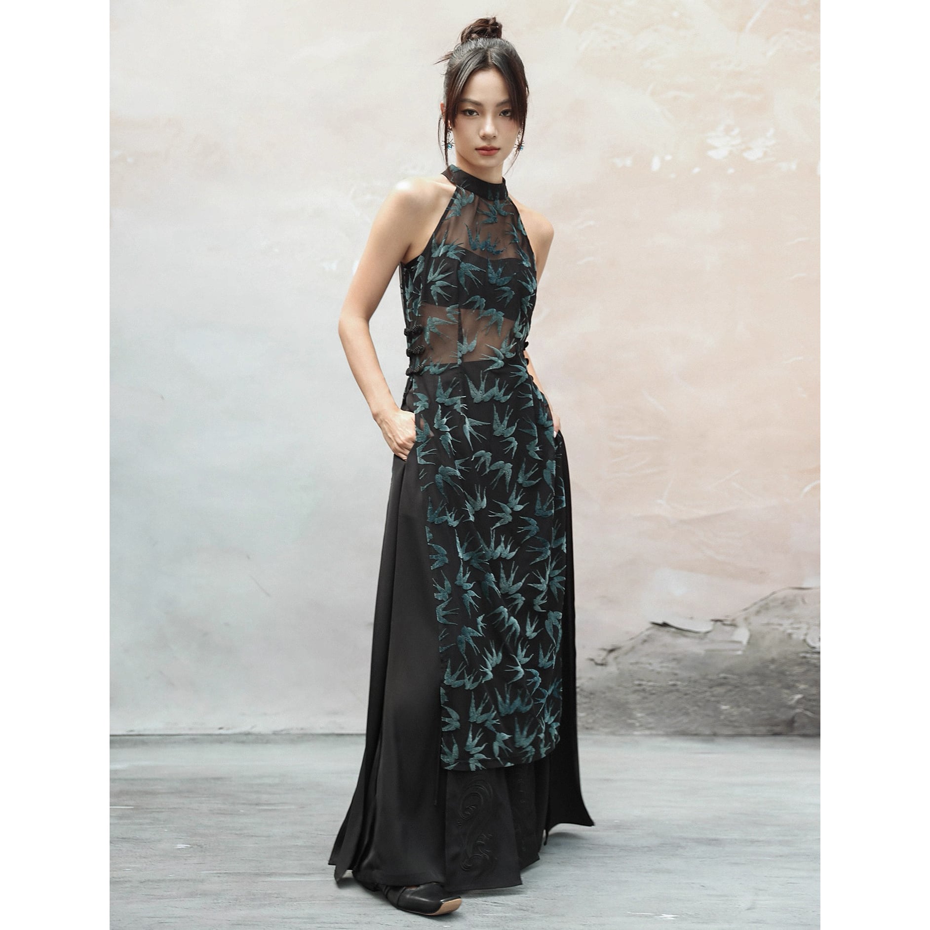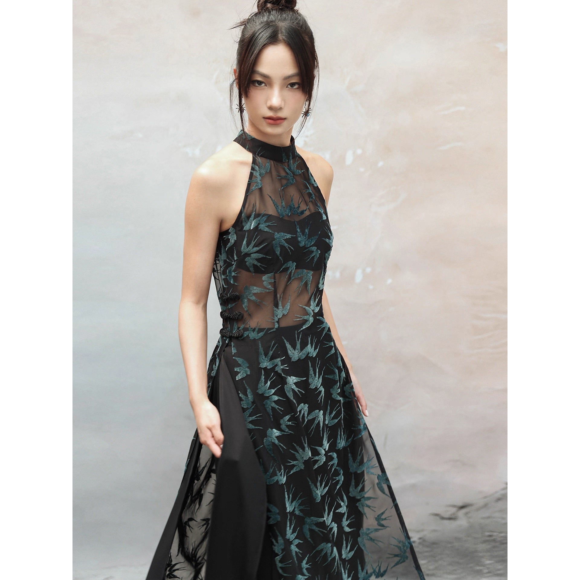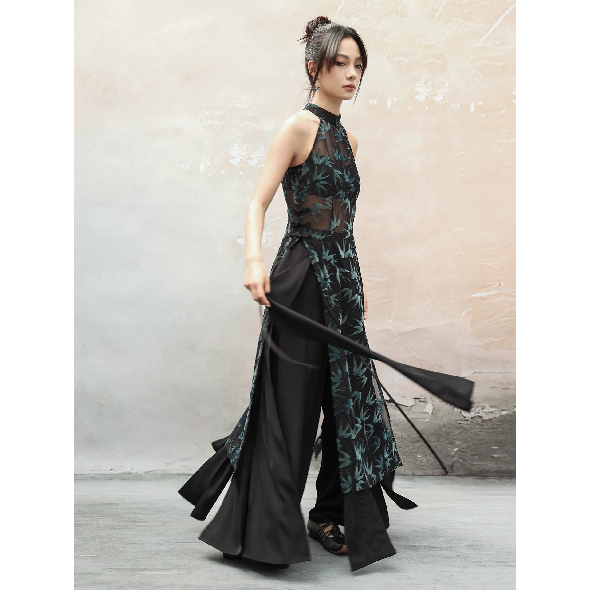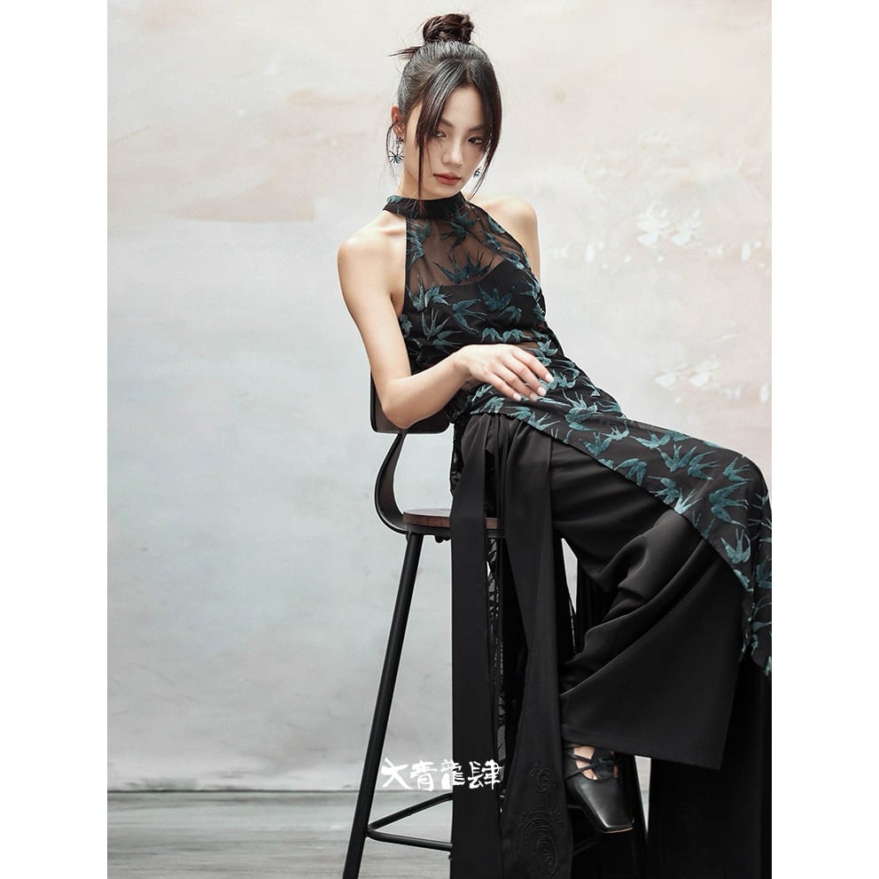 【之x大青龍肆】★ロングシャツ★グリーン 中国ファッション フロッキー ノースリーブ