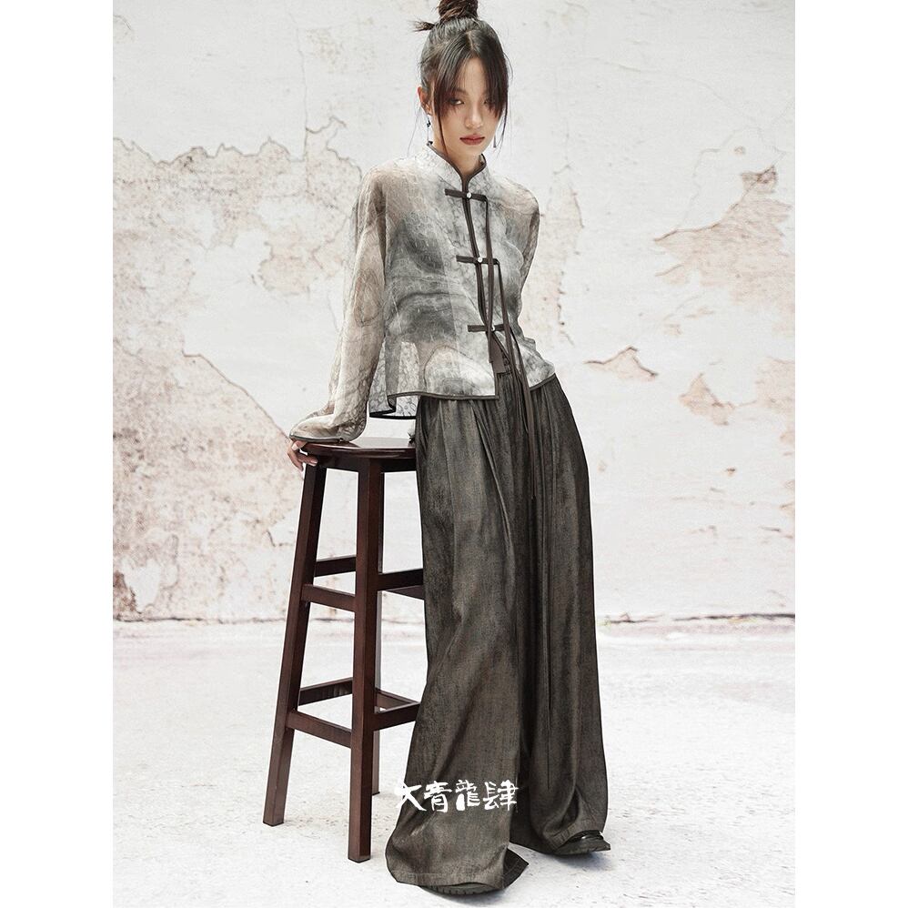 【之x大青龍肆】★ワイドパンツ★ブラック 中国ファッション ズボン カジュアル