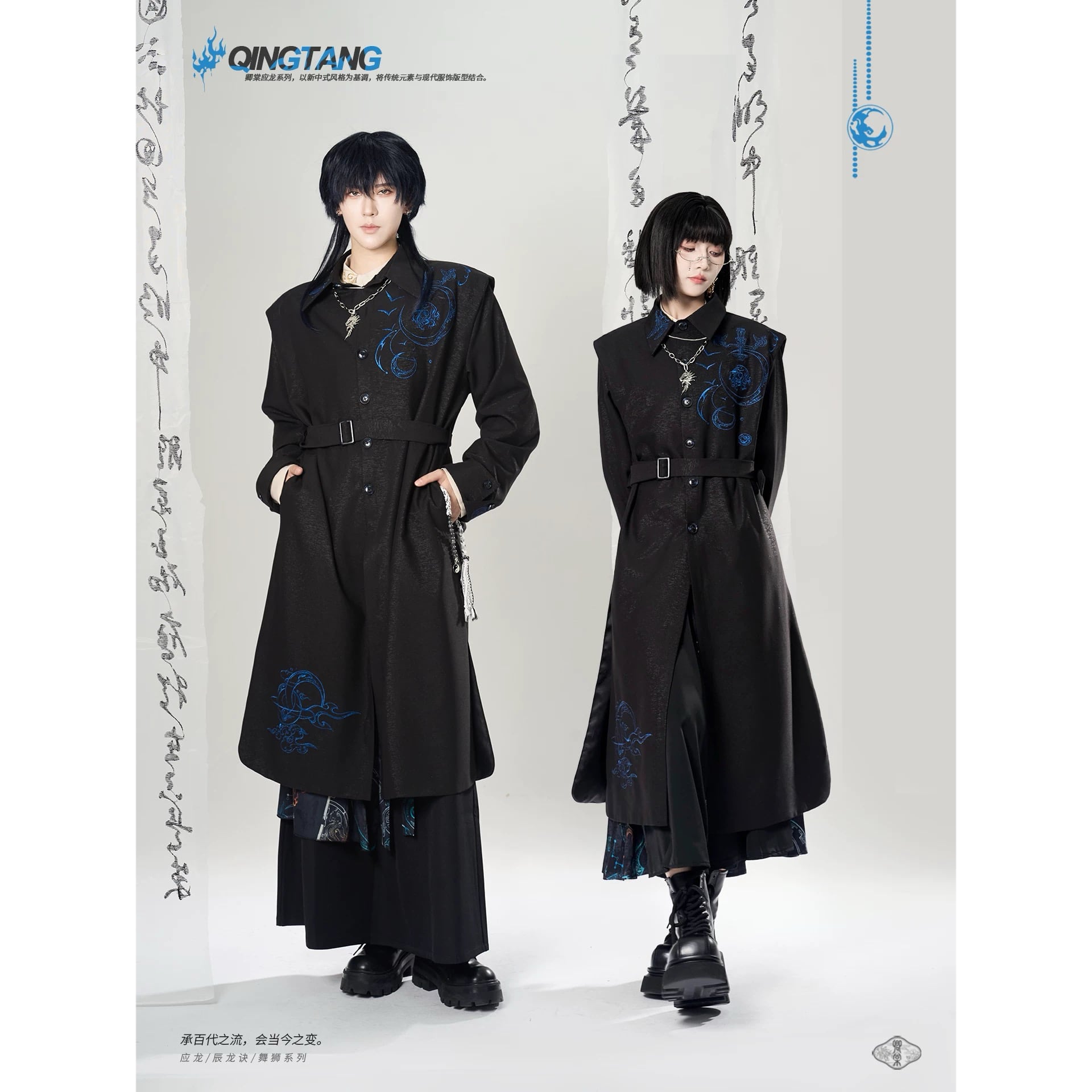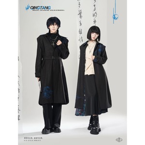 【之x卿堂】★ロングコート★ブラック 中国ファッション チャイナ デザイン 刺繍 男女兼用