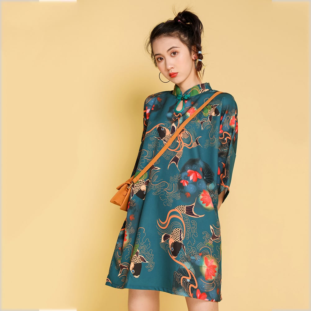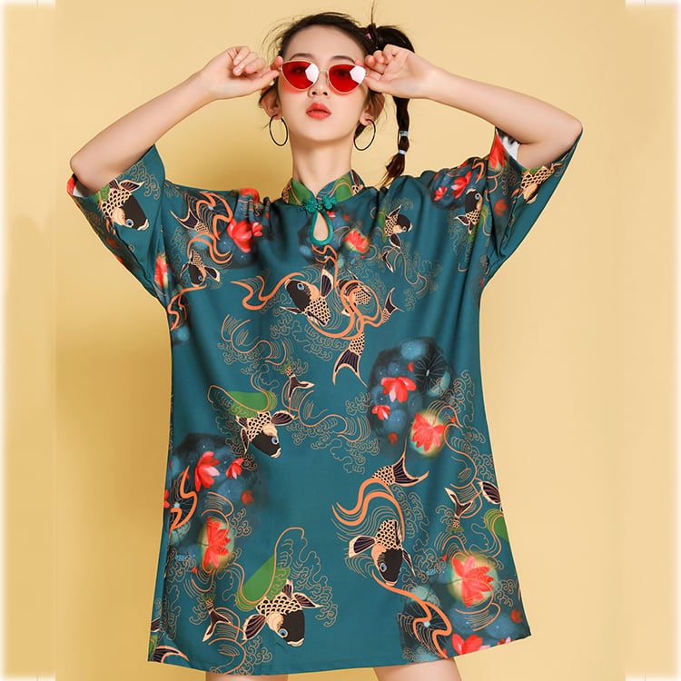 ✪大人気販売中✪【之】★ワンピース★魚 プリント vintage チャイナ風 合わせやすい 改良唐装 入学式 卒業式 kore | 之