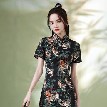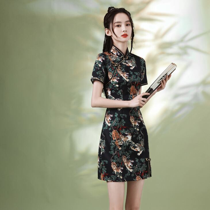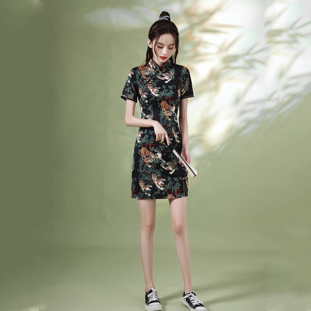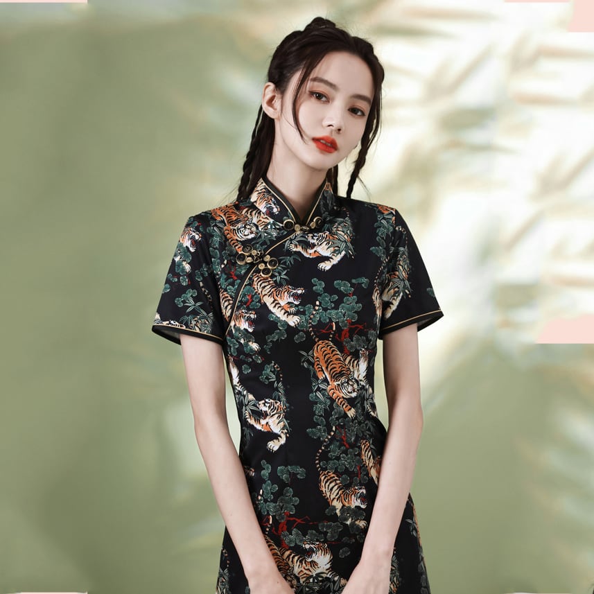 【之】★チャイナドレス★ブラック 一林二虎 ホック 虎 チャイナ風 kore
