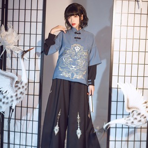 【之x卿堂】★チャイナ風ズボン★ブラック 隠 刺繍 ワイドパンツ kore