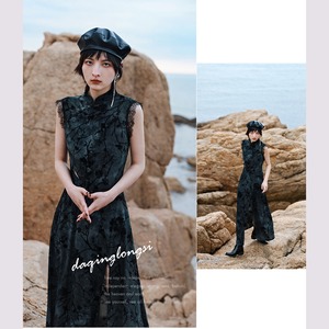 ◇詩眼巻天下◇【之x大青龍肆】★チャイナ風ワンピース★花柄 チャイナドレス 綴り合せる ノースリーブ レース 入学式 卒業式 kore