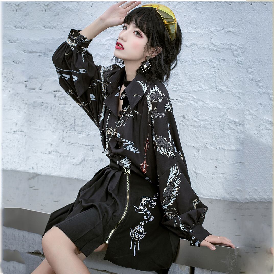【之x卿堂】★プリーツスカート・将进酒★ブラック 漢服 刺繍 チャイナ風 | 之