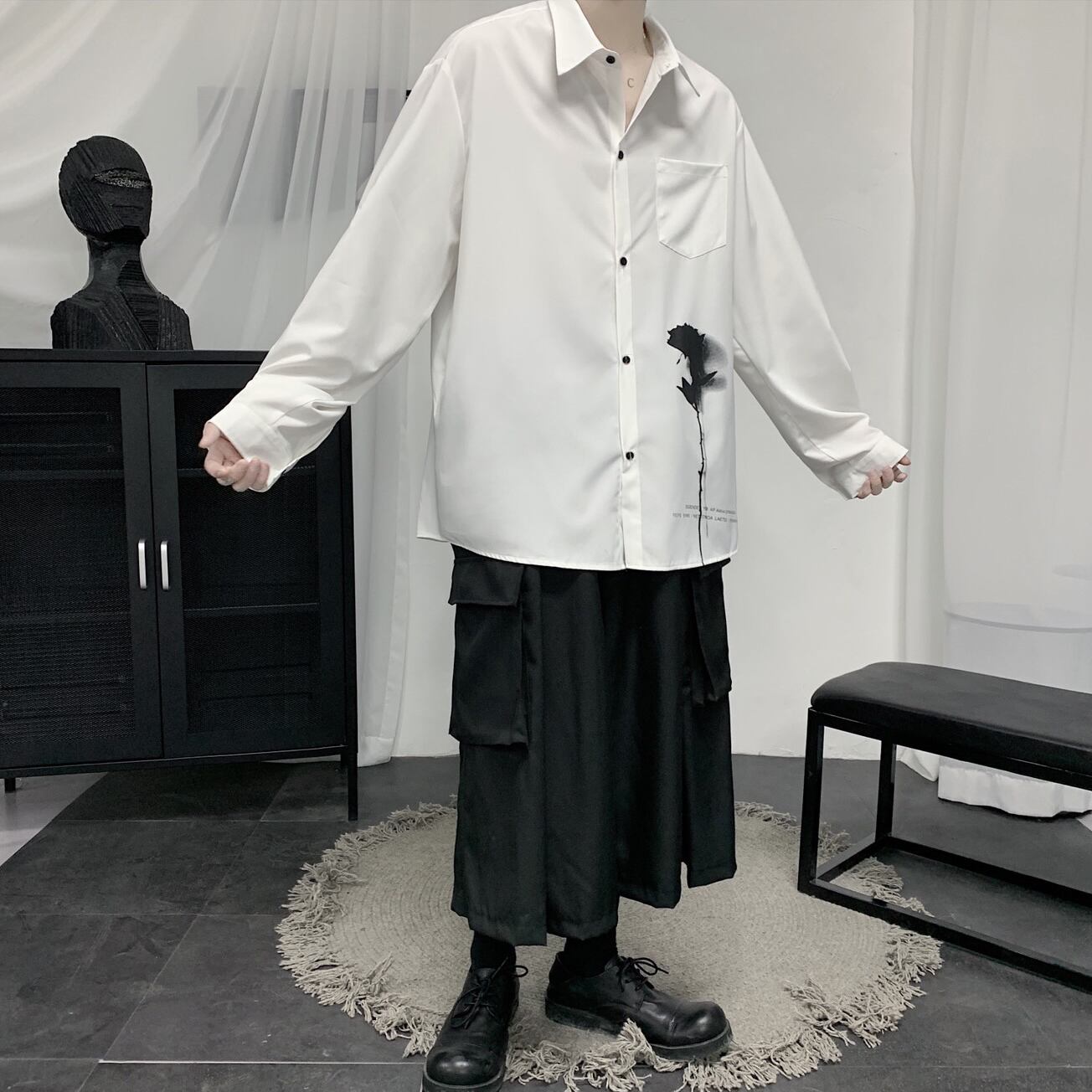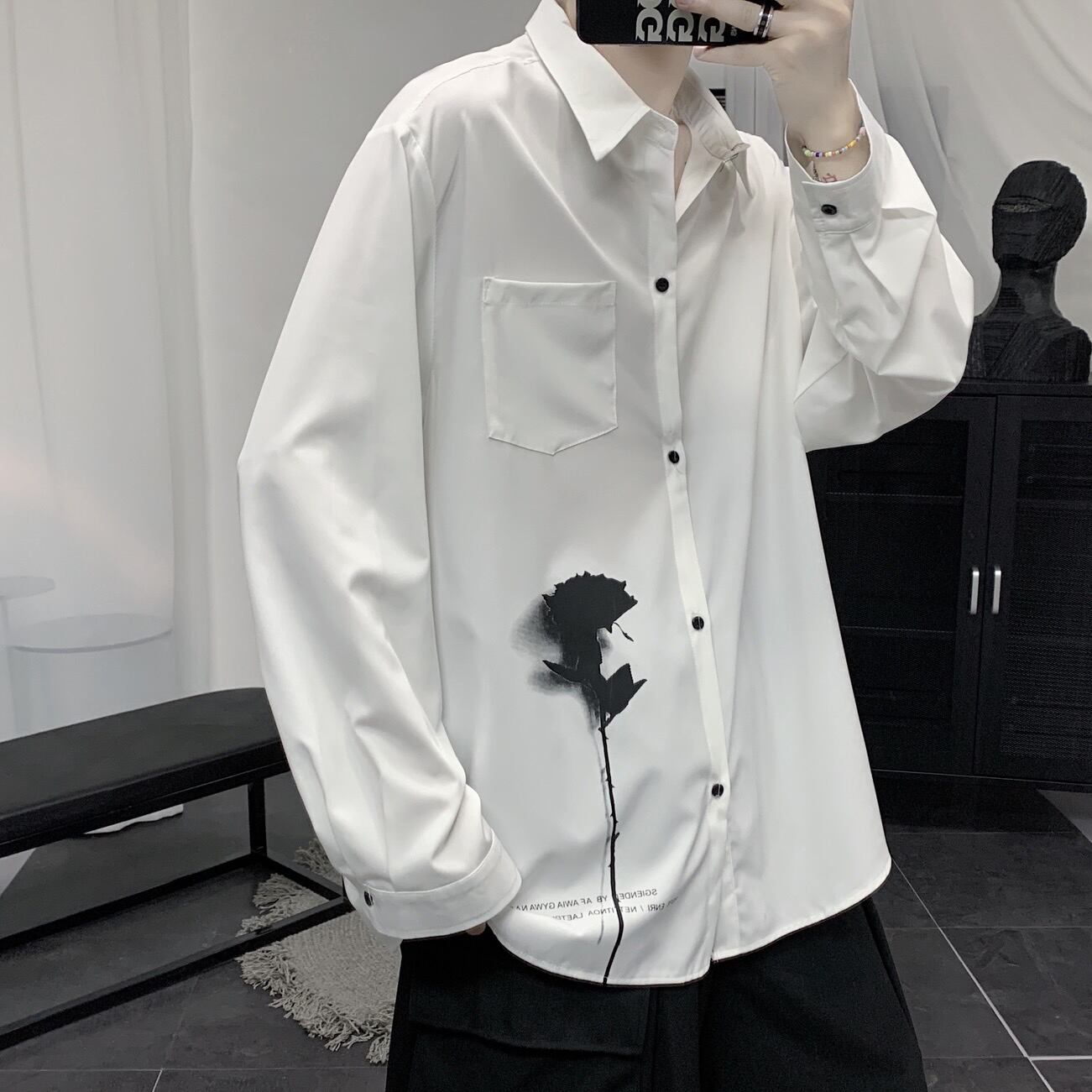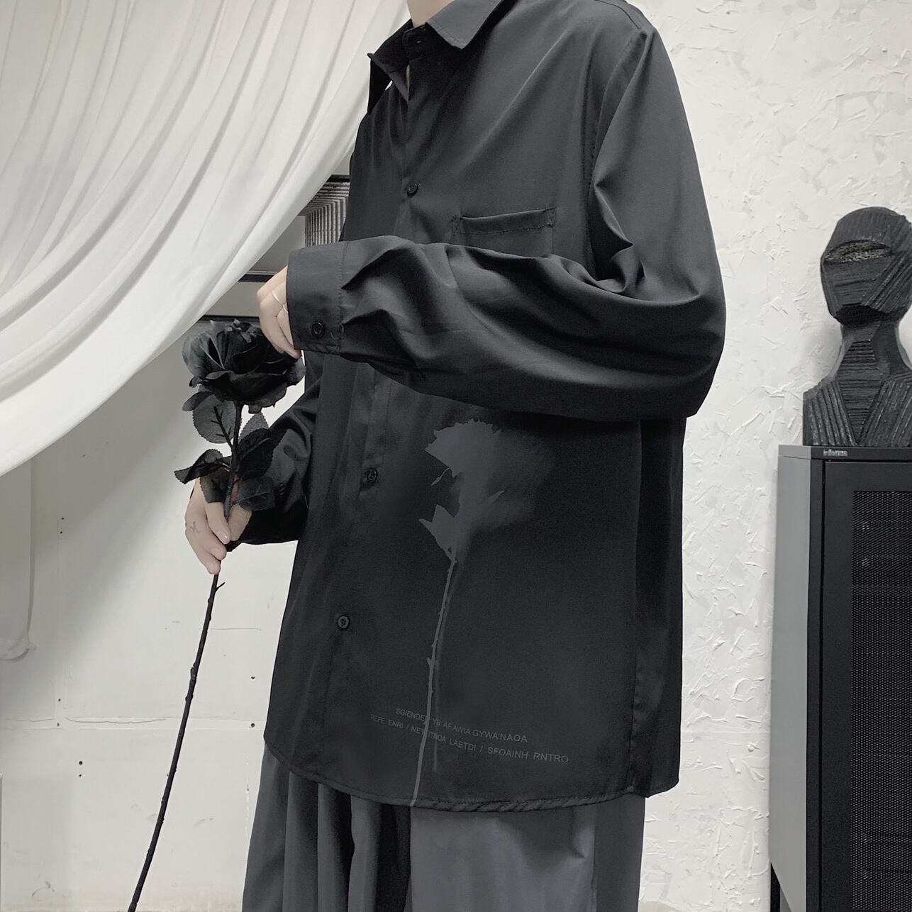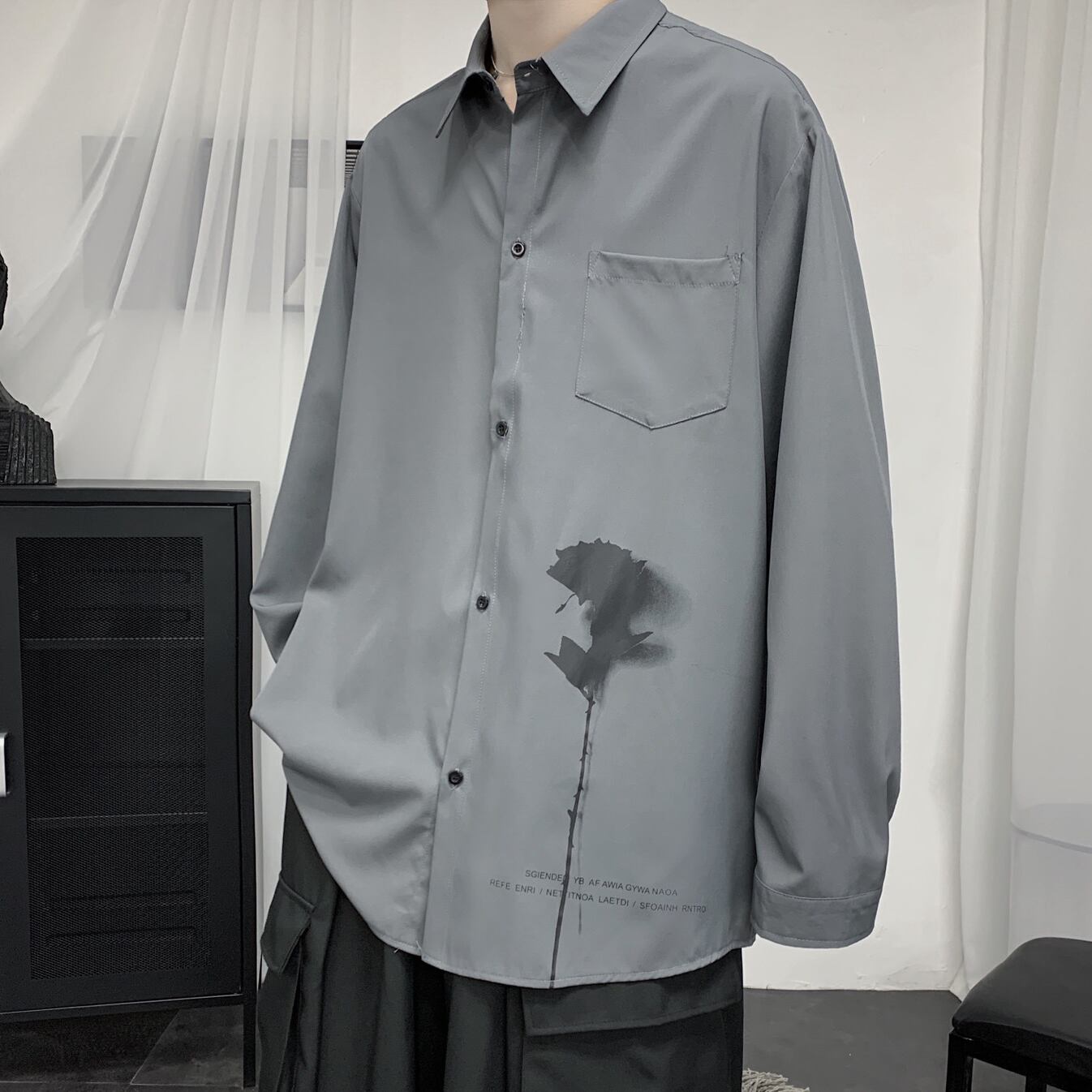 【之】★シャツ★4色入り デザイン トップス シンプル 長袖 プリント バラ柄 kore
