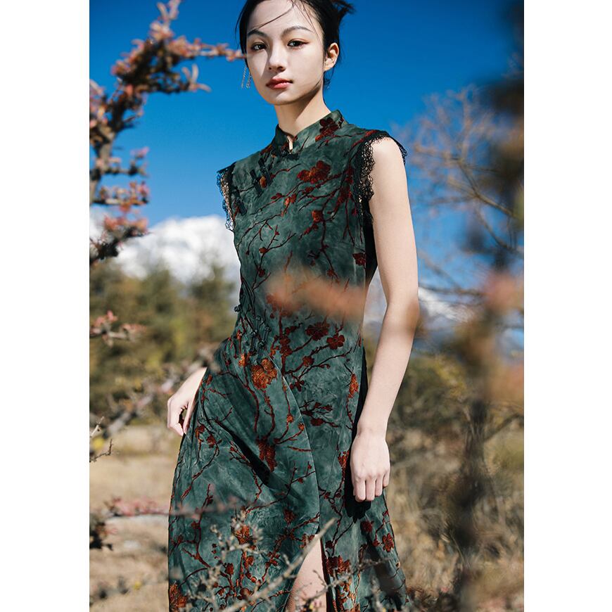 ◇詩眼巻天下◇【之x大青龍肆】★チャイナドレス★グリーン ノースリーブ ワンピース 入学式 卒業式 kore