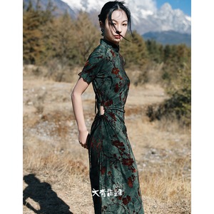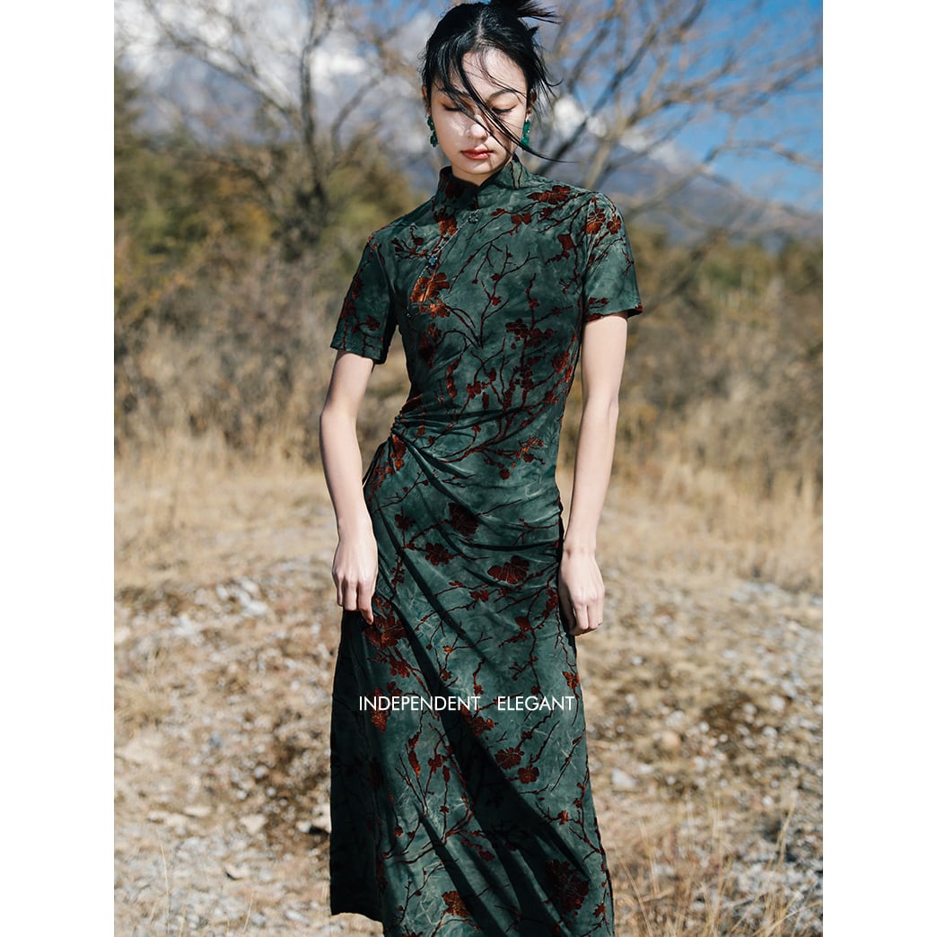 ◇詩眼巻天下◇【之x大青龍肆】★チャイナドレス★グリーン 半袖 ワンピース kore