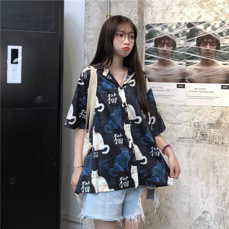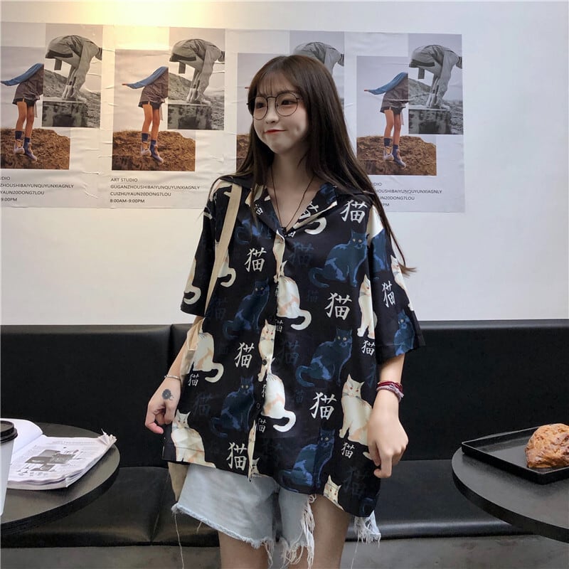 ✪人気商品✪【之】★激安シャツ★2色入り 猫 プリント 半袖 レディース kore | 之