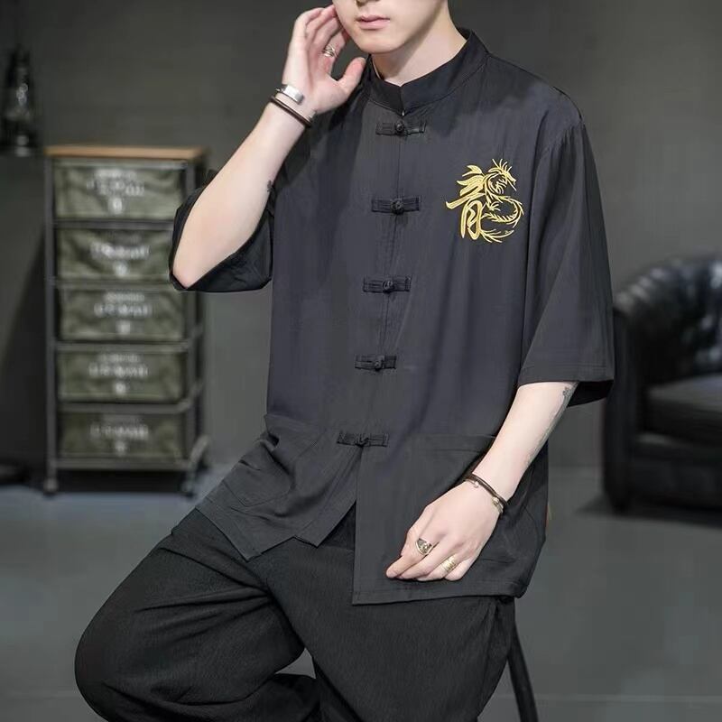 【之】★シャツ★3色入り 龍柄 夏 薄い 半袖 kore | 之