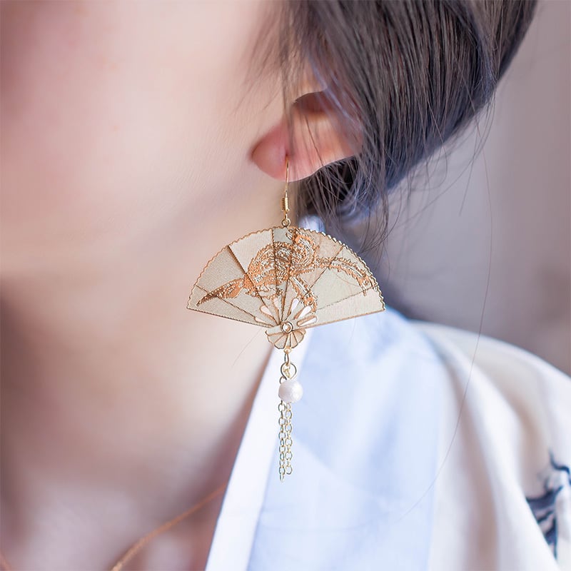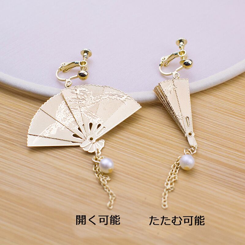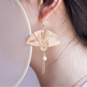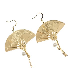 【之】★チャイナ風・ピアス★ゴールド 扇子 kore