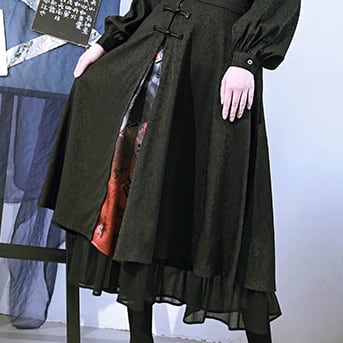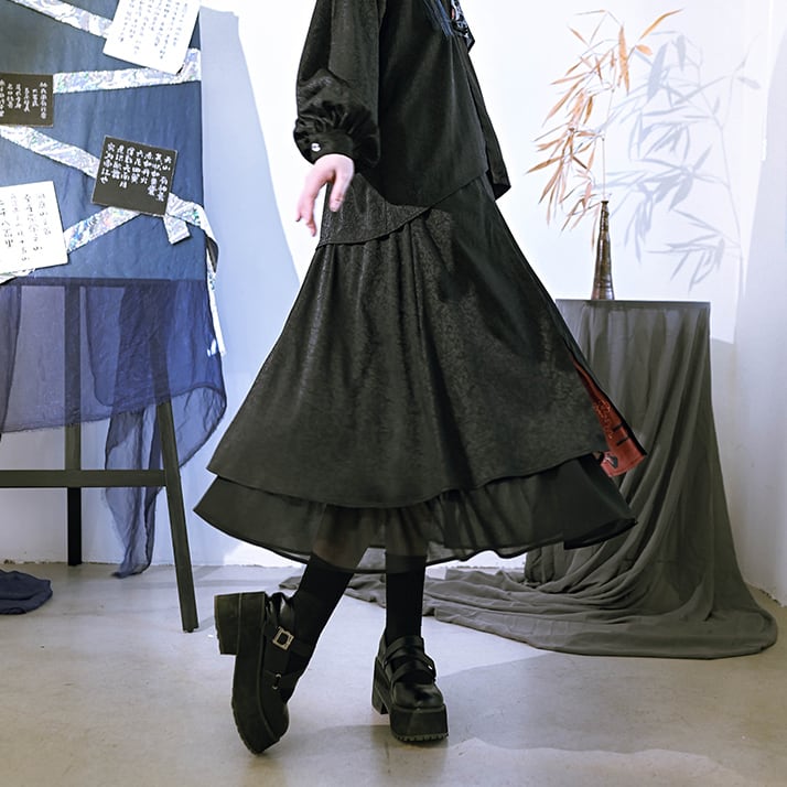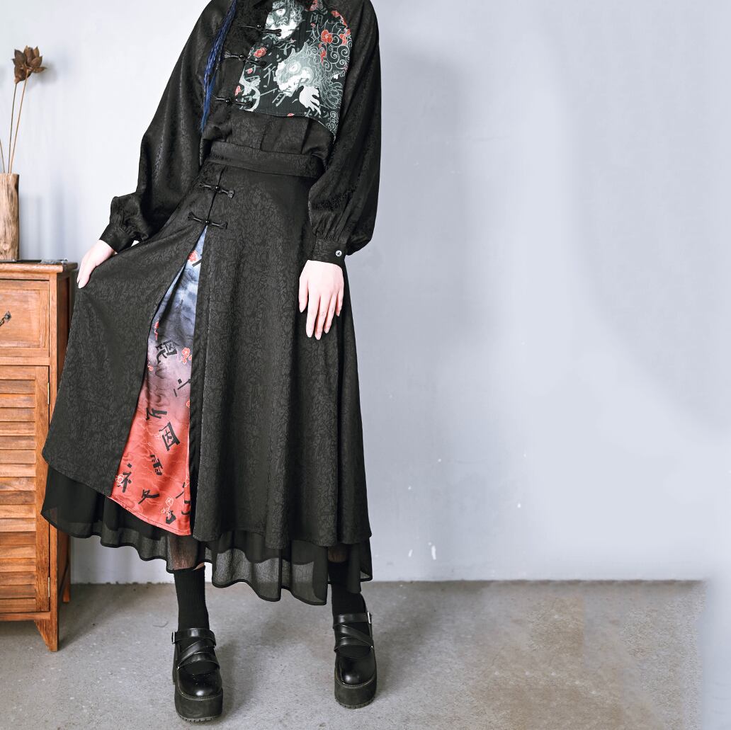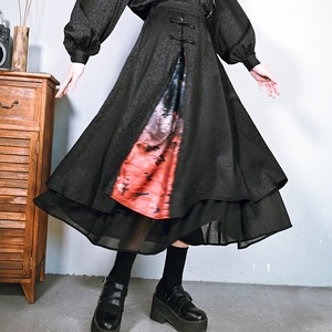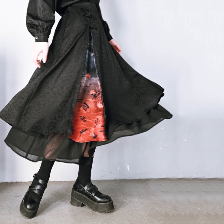 【之x古怪舎】★ロングスカート・咬文嚼字★ブラック 暗黒風 縁飾り kore