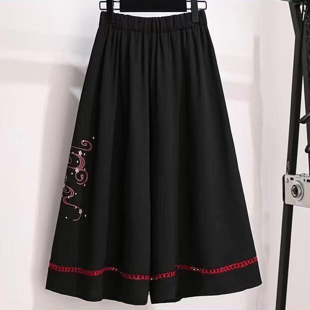 【之】★セットアップ★ブラック チャイナ風 刺繍 デザイン 猫柄 カジュアル 五分丈 kore | 之