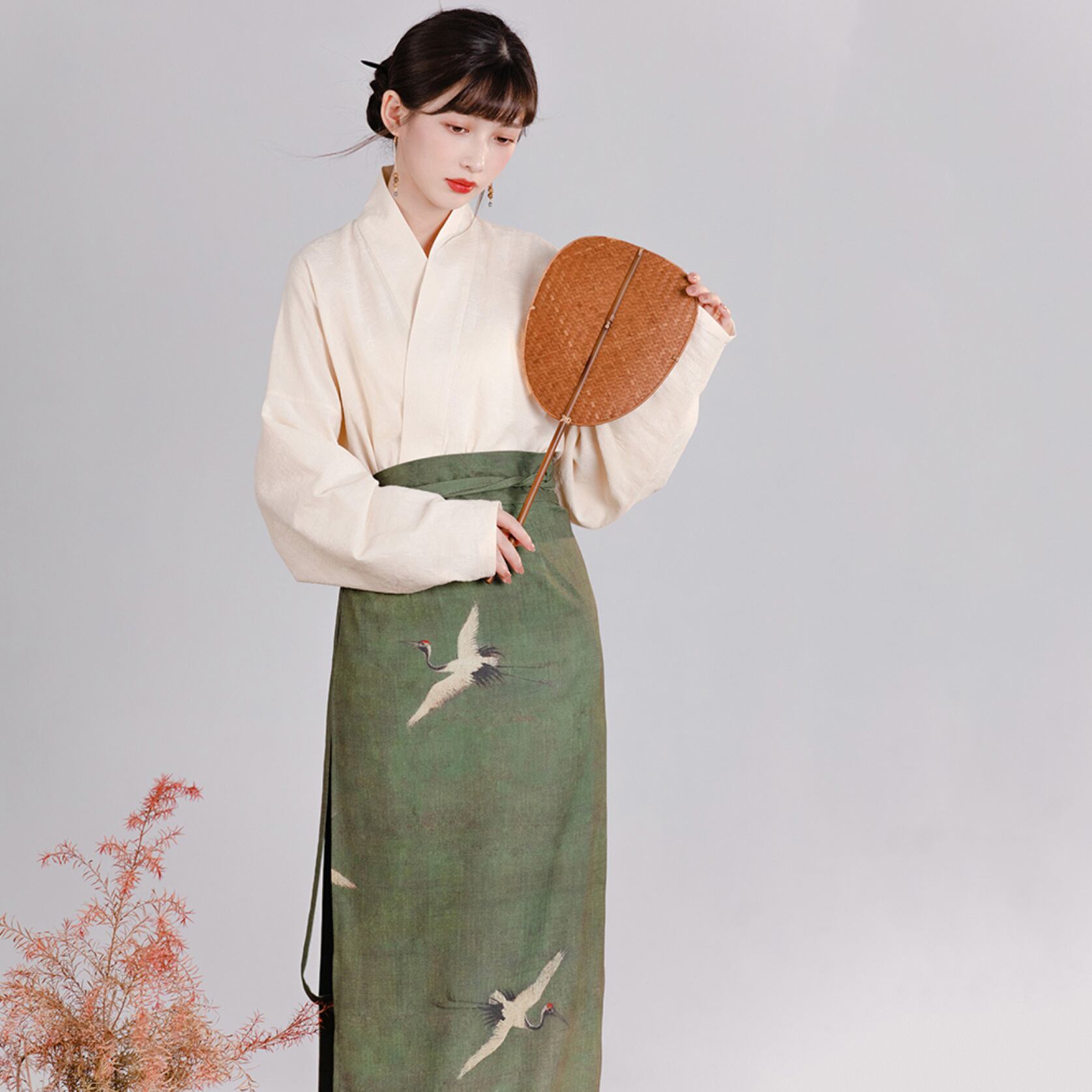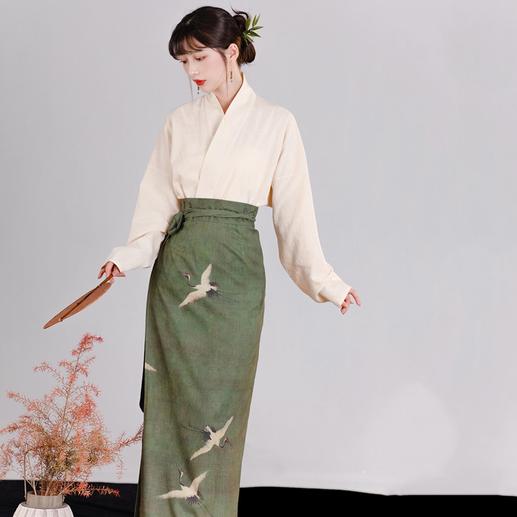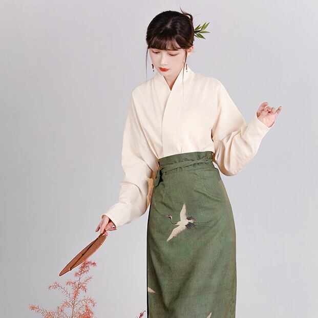 【之x池夏】★チャイナ風セットアップ・秋塘鶴★カーキ チャイナ風 漢服 エレガント kore