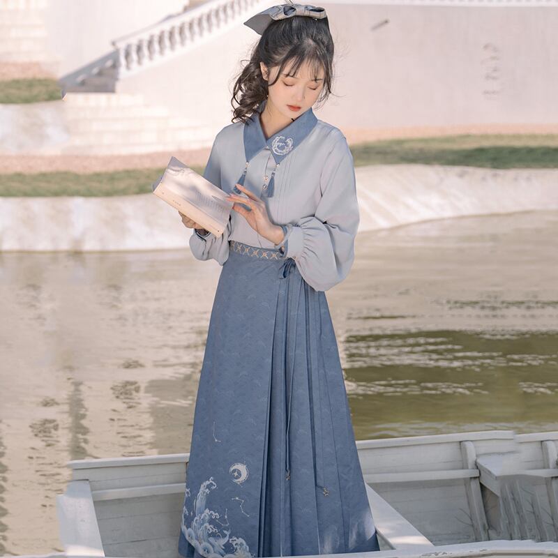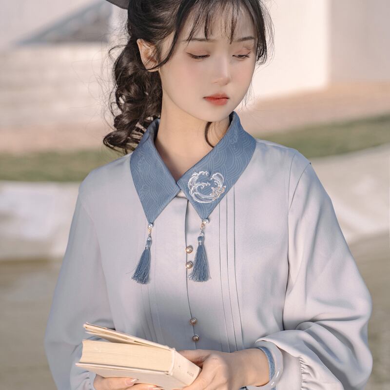 【之】★セットアップ(トップス+テーパードパンツ)★ブルー vintage 合わせやすい カジュアル kore