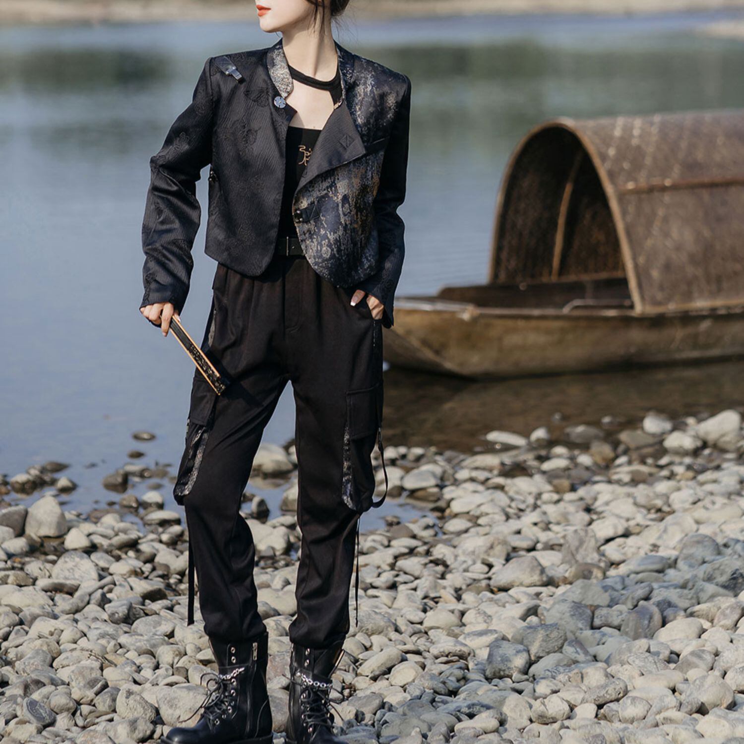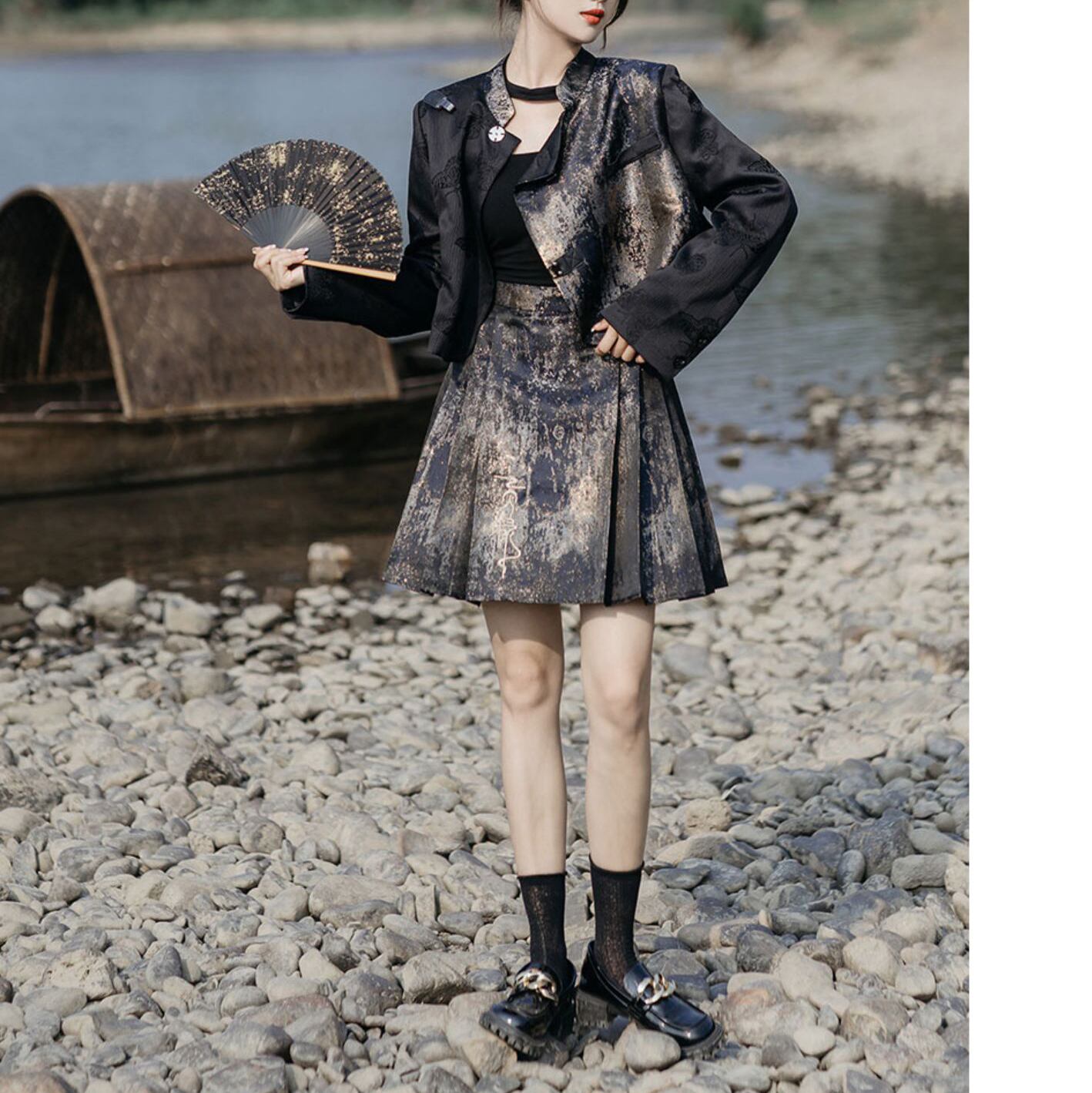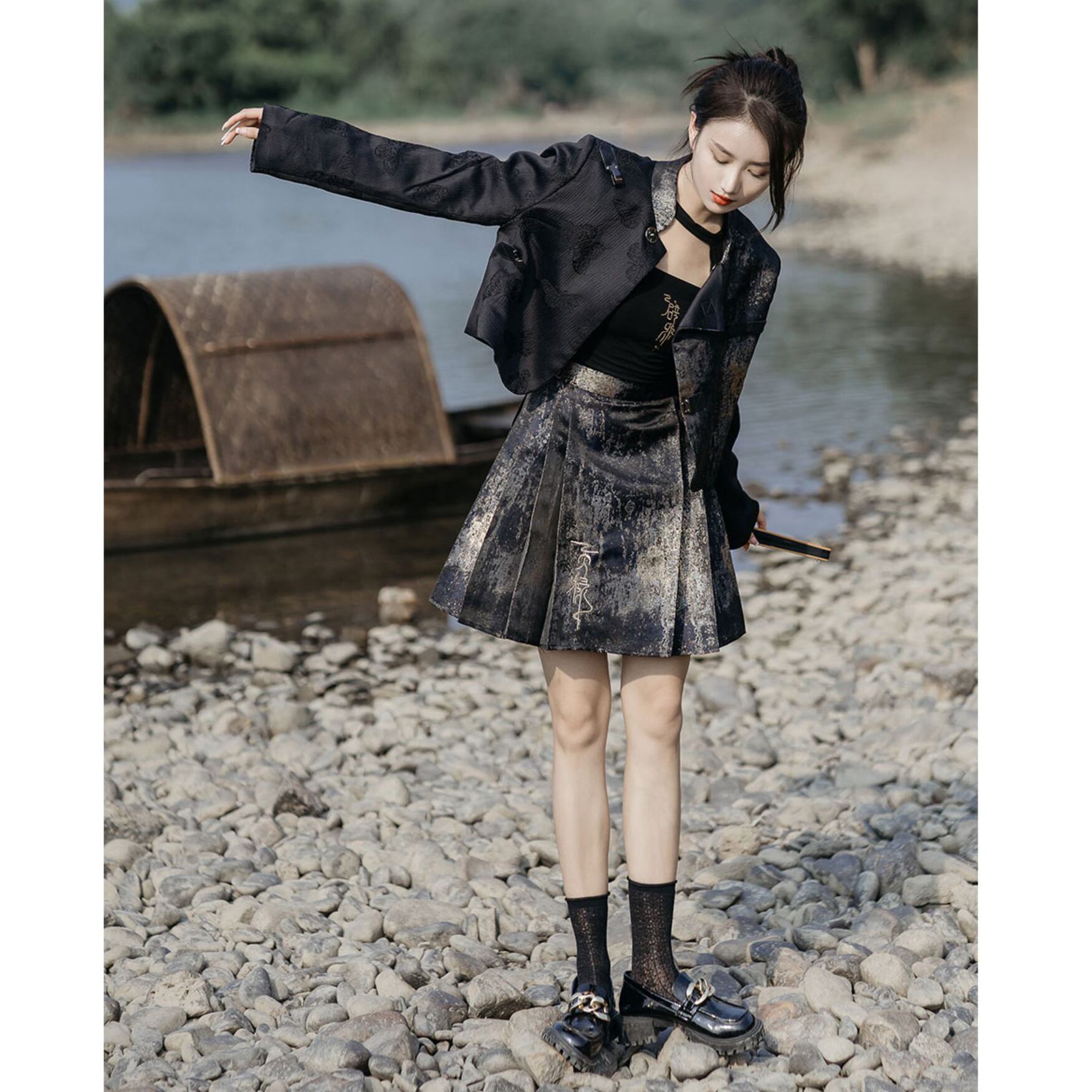【之x卿堂】★コート/プリーツスカート・星辰★ブラック+ゴールド JK 刺繍 暗黒風 チャイナ風