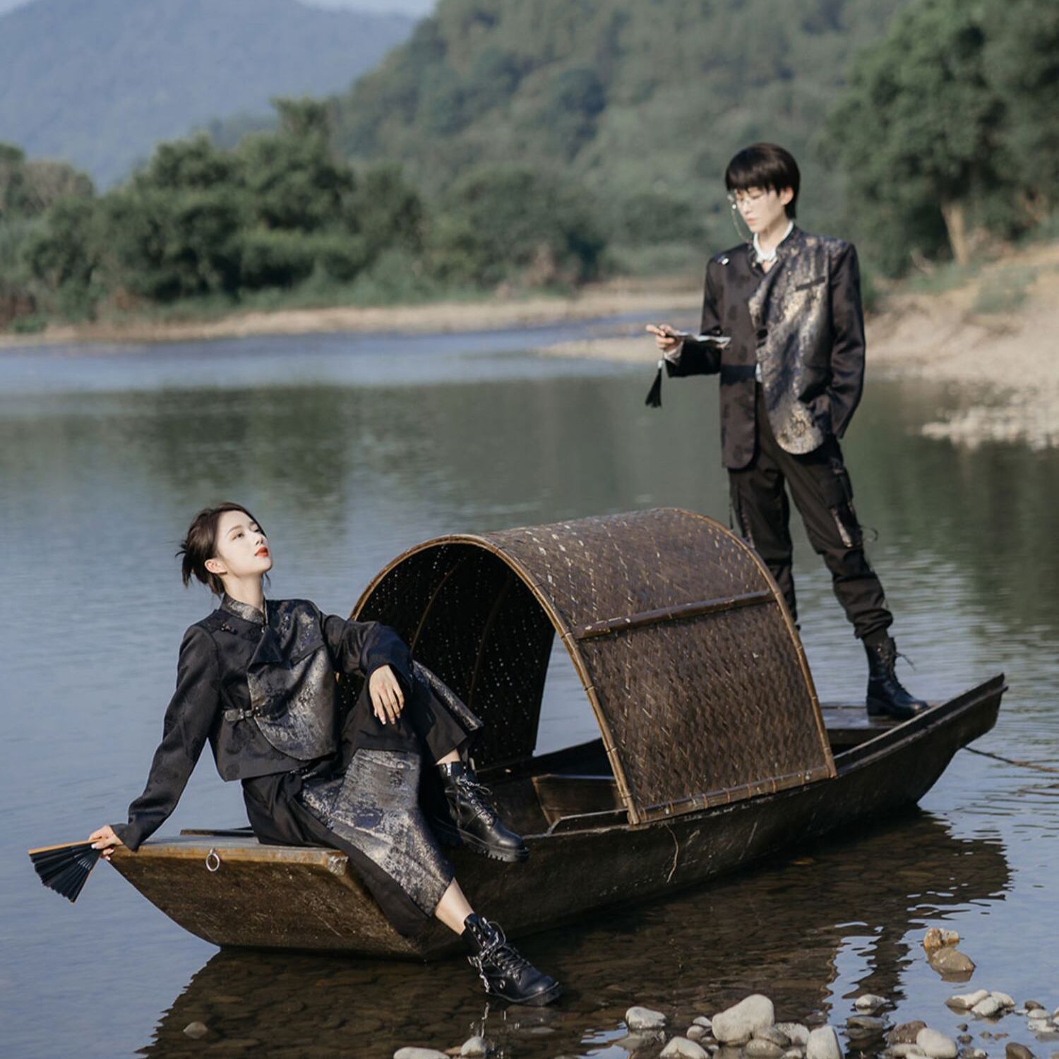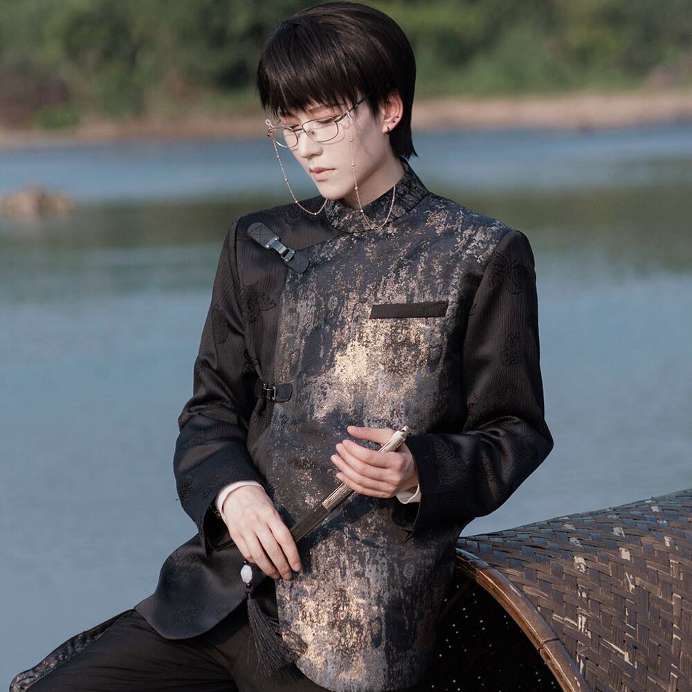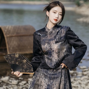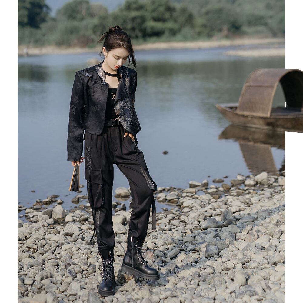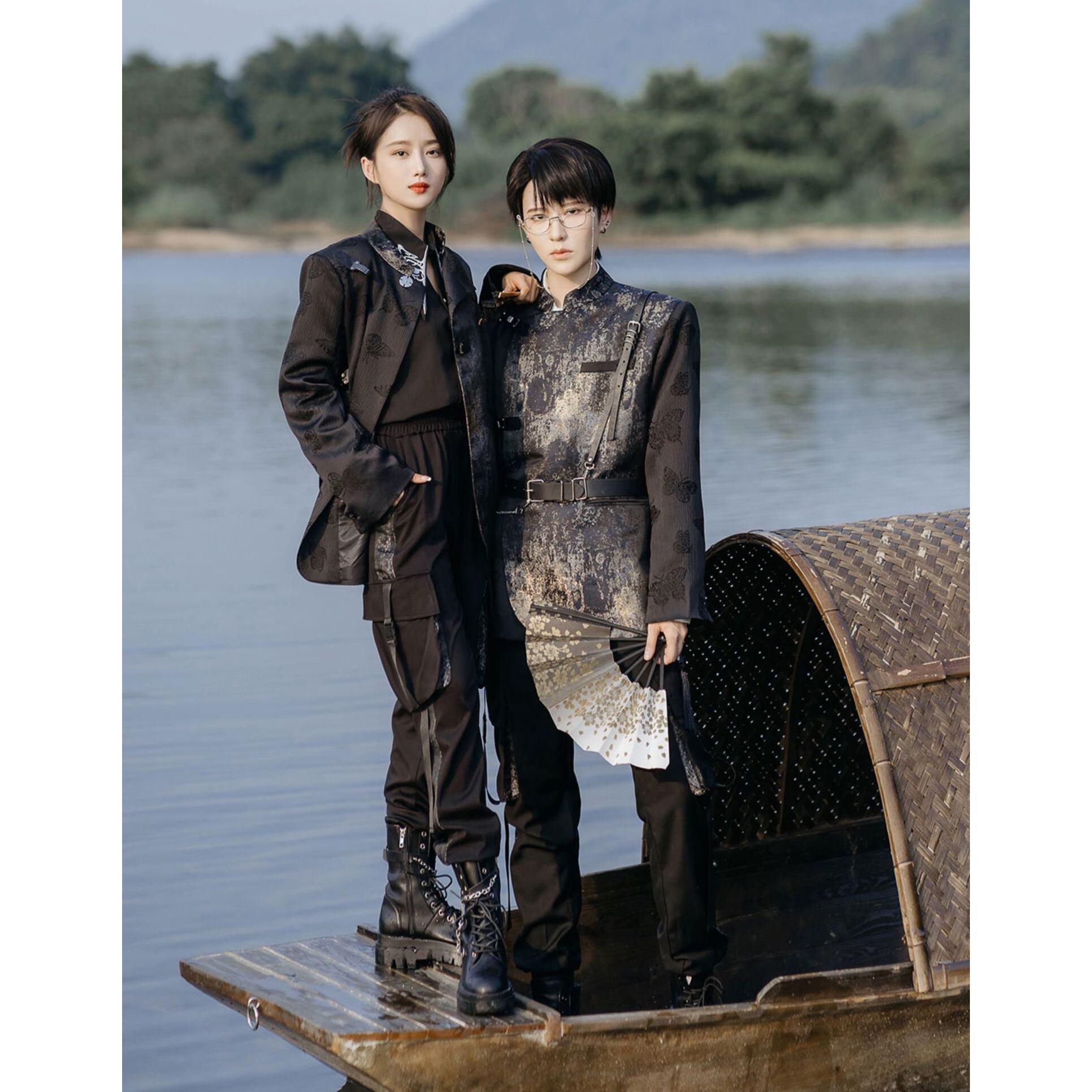 【之x卿堂】★コート/プリーツスカート・星辰★ブラック+ゴールド JK 刺繍 暗黒風 チャイナ風