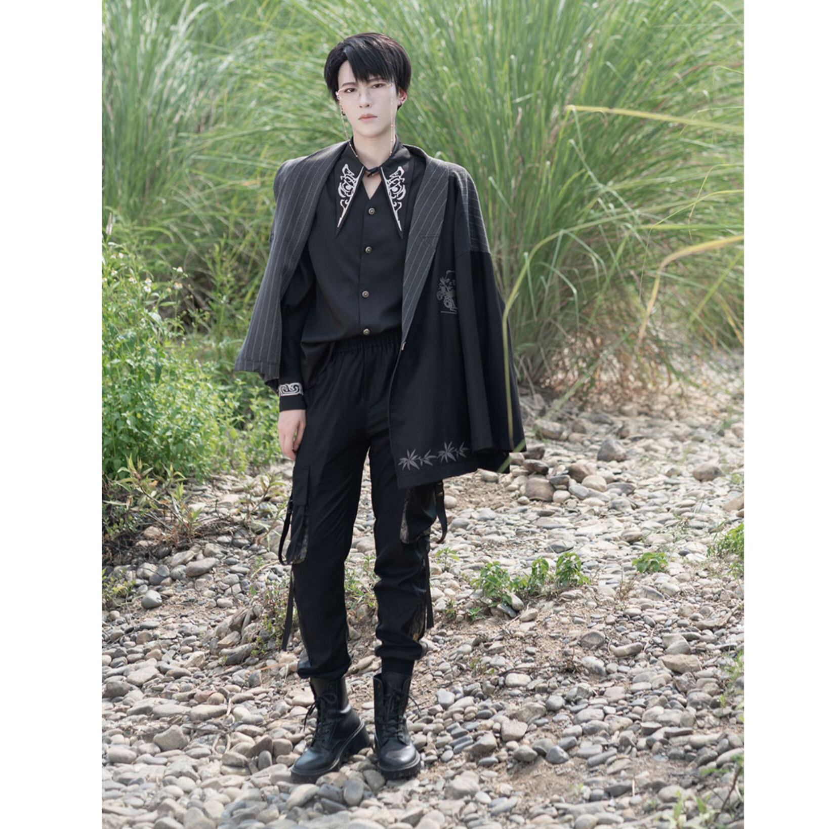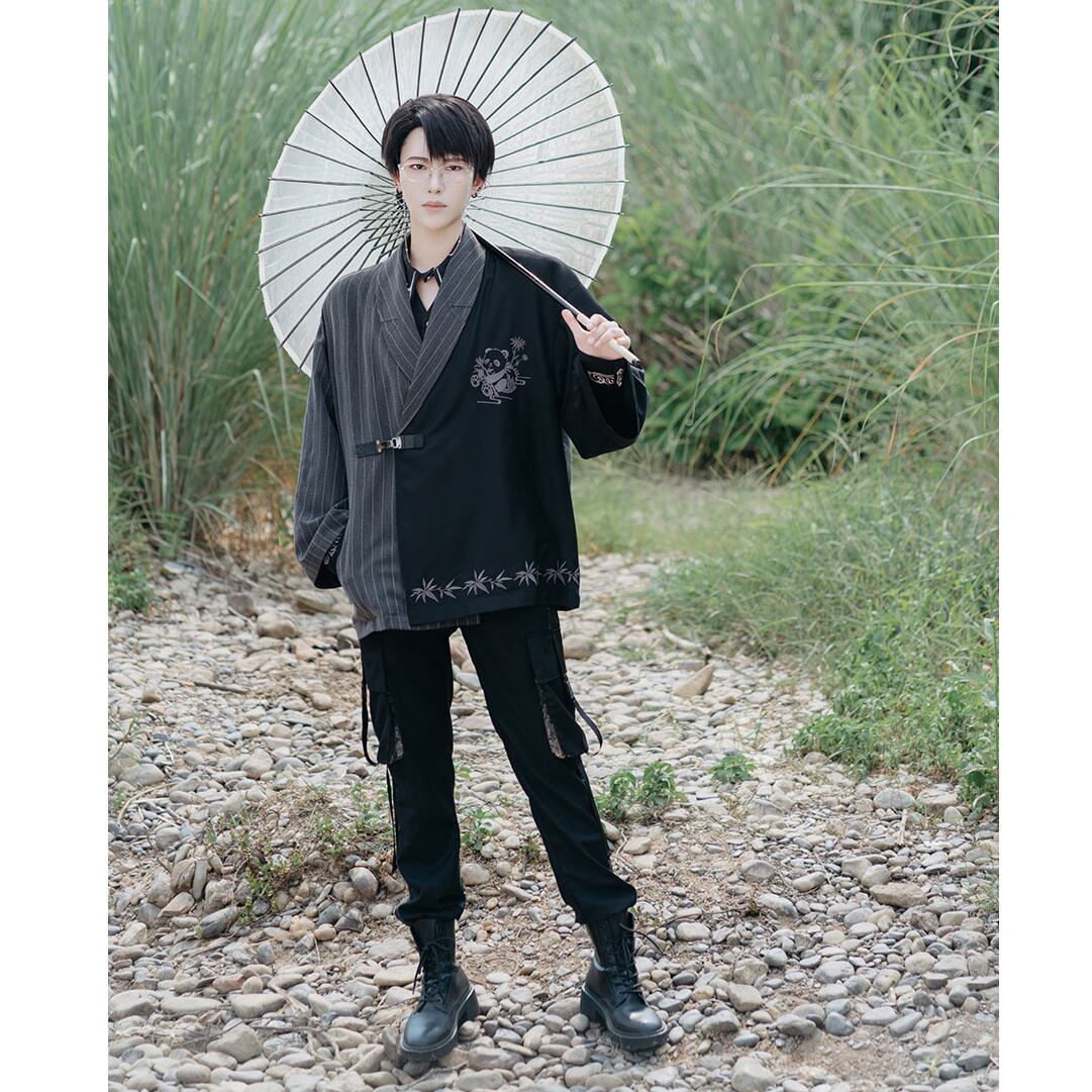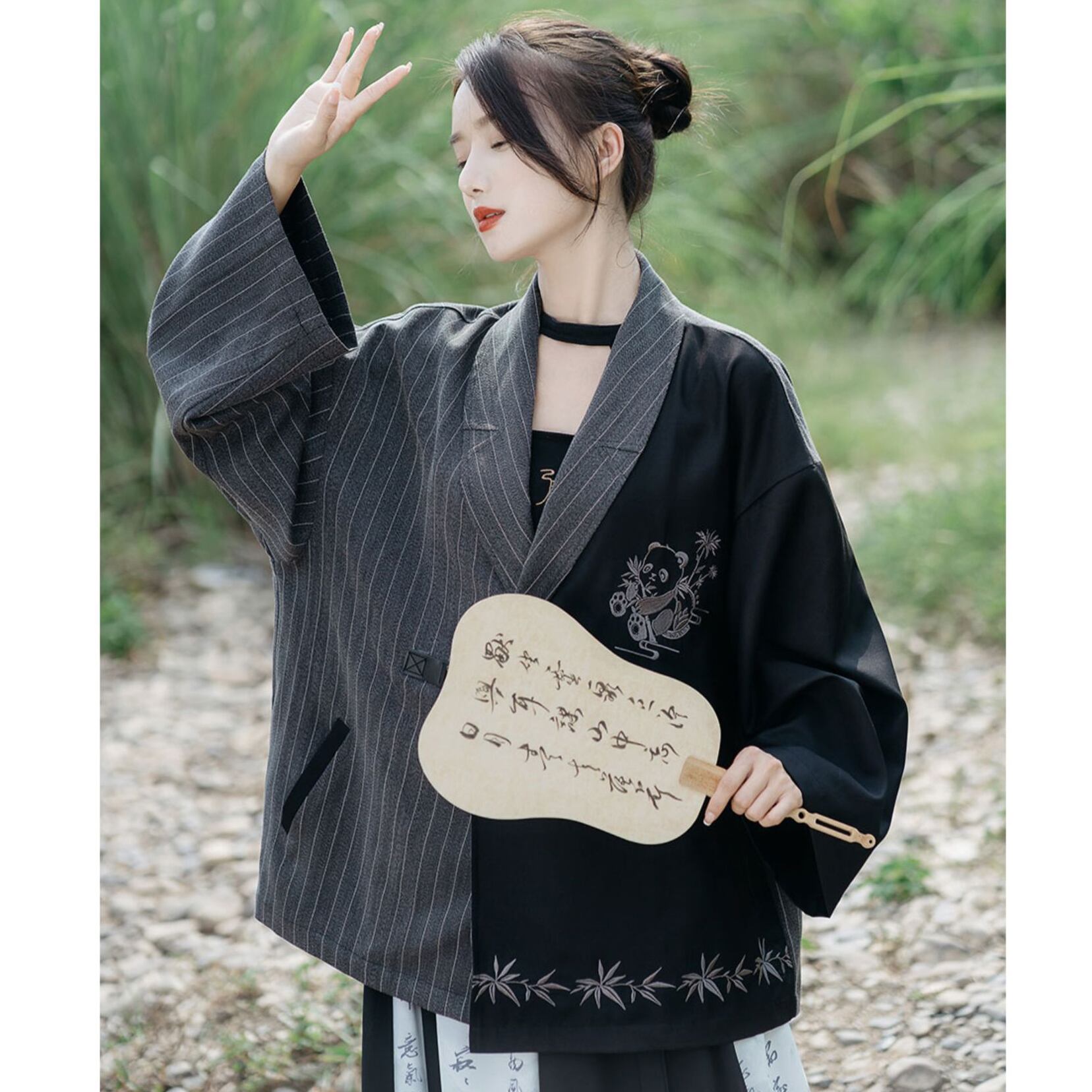 【之x卿堂】★コート・無染★ブラック 綴り合せ プリント 男女兼用 刺繍 パンダ kore