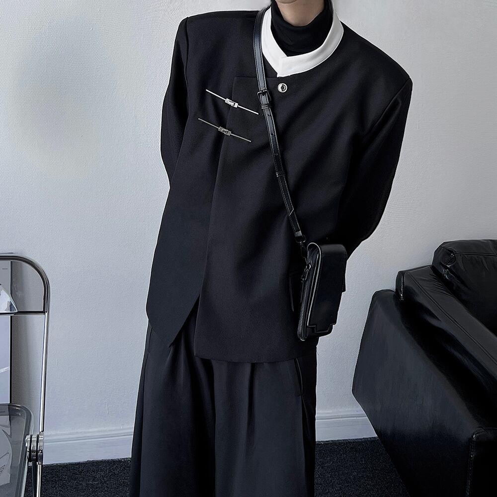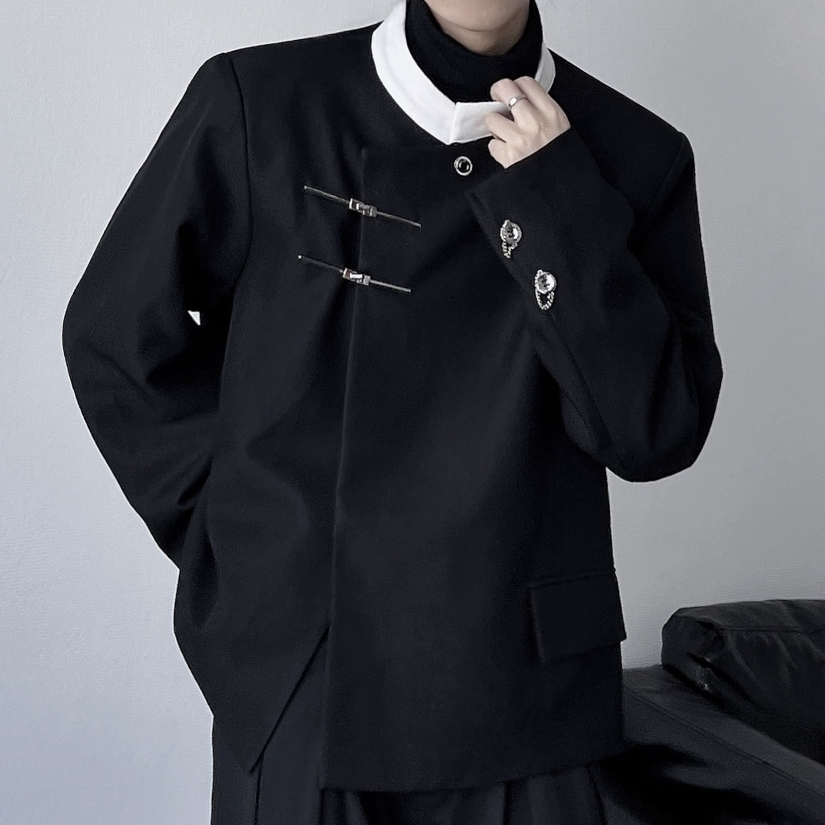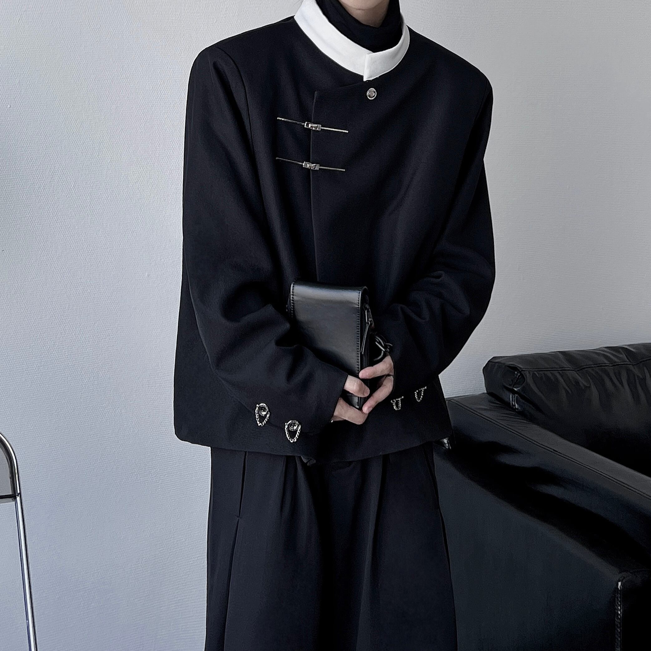 【之】★コート★ブラック 合わせやすい シンプル パール 暗黒風 ホック kore