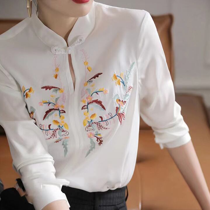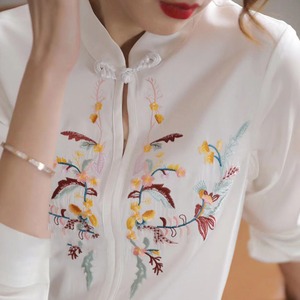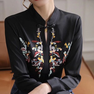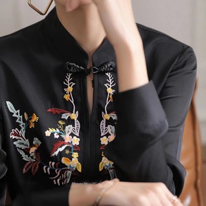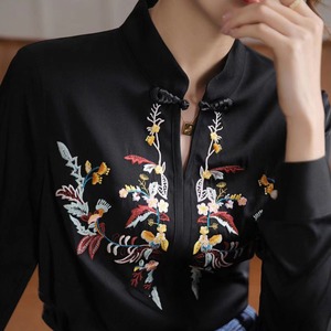 ✪人気上昇✪【之】★チャイナ風シャツ★ブラック ホワイト 中華服 レディース ホック 長袖 刺繍 kore | 之