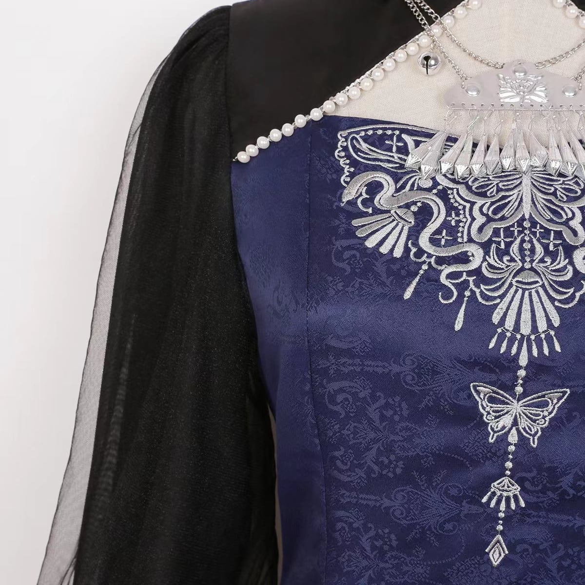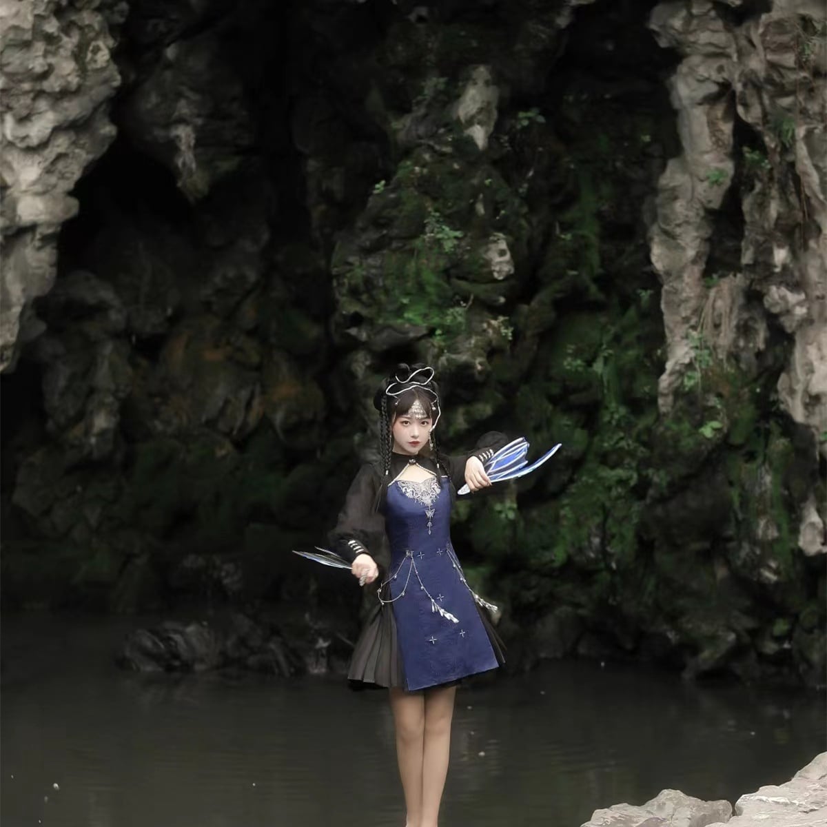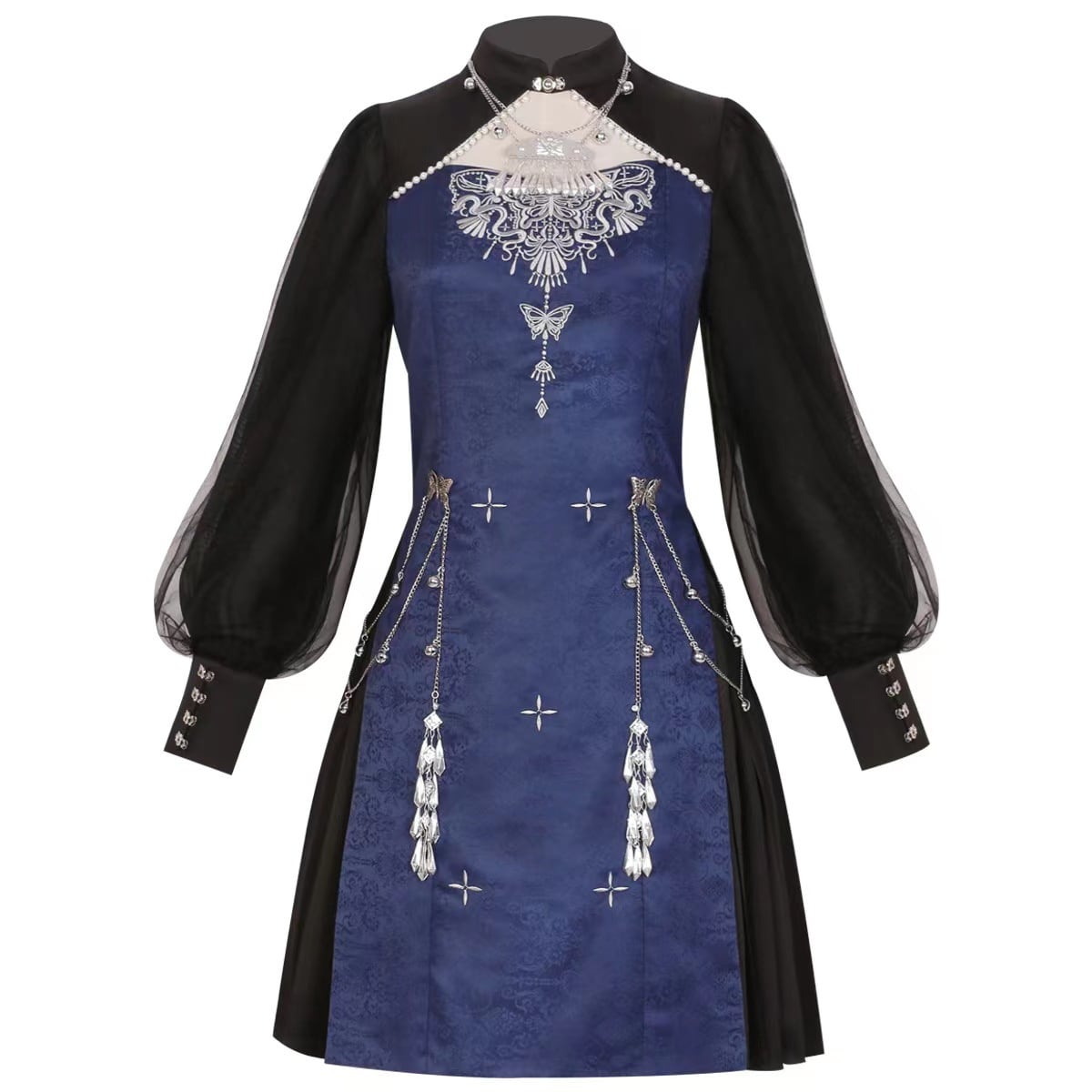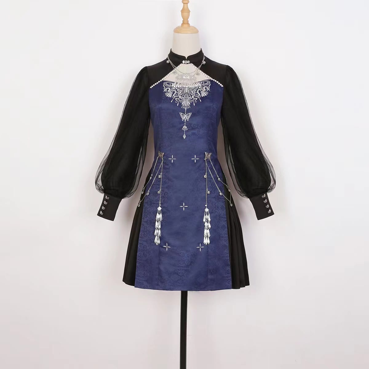 【之】★チャイナ風ワンピース★ブラック+ネイビー チャイナドレス 中華服 レディース 漢服 入学式 卒業式 kore