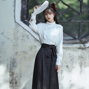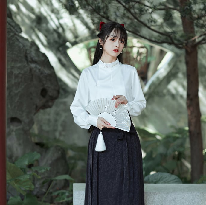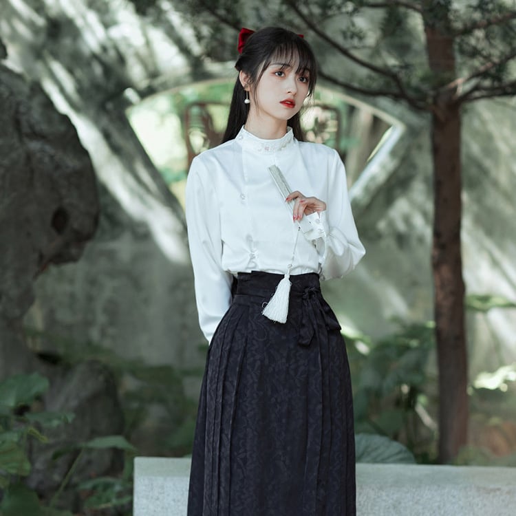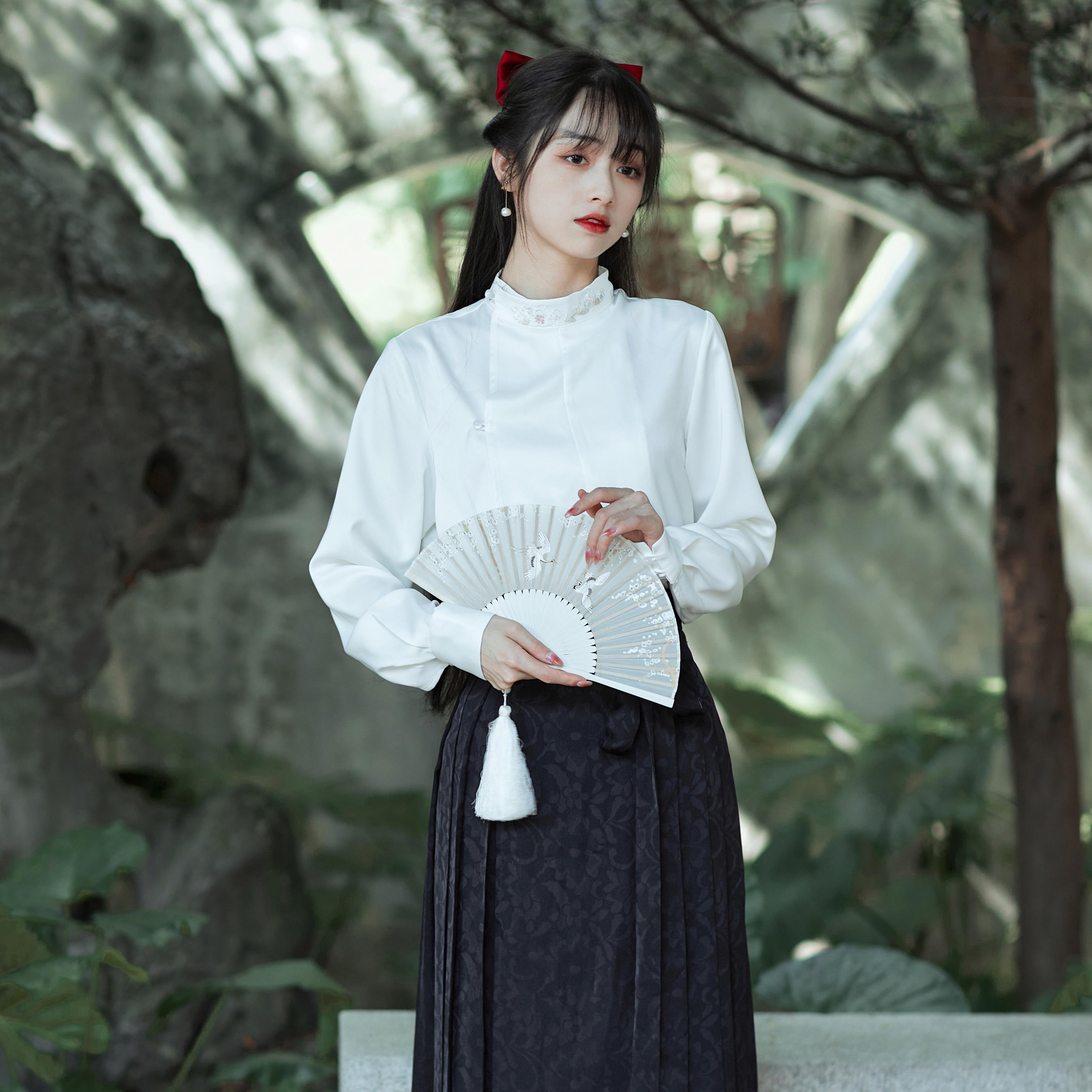 【之】★シャツ★ホワイト チャイナ風 ホック エレガント 刺繍 kore