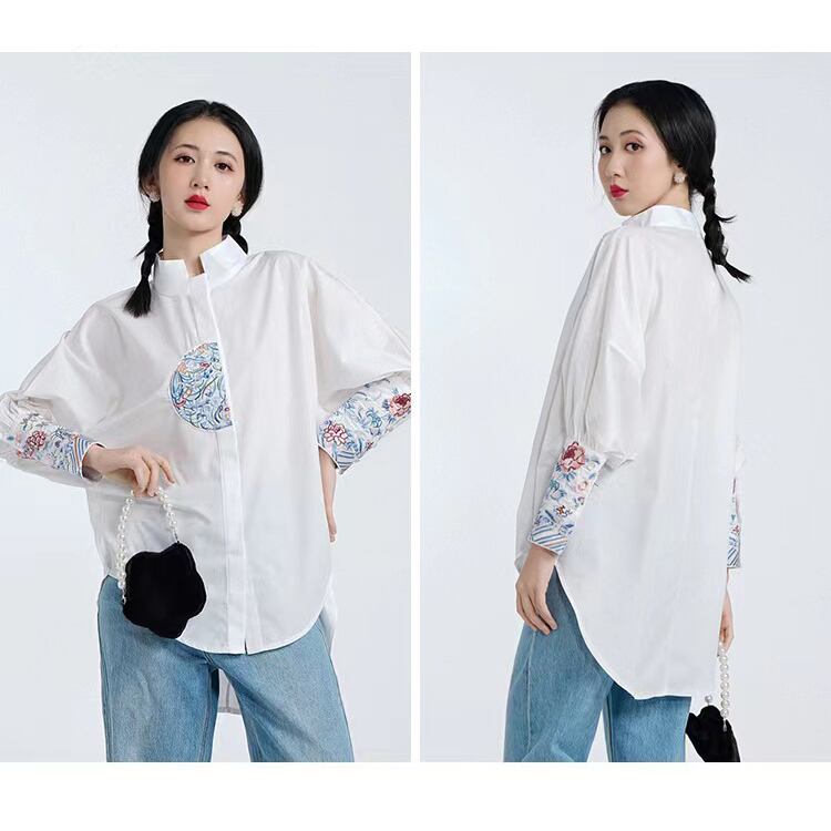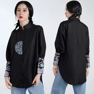 【之】★チャイナ風シャツ★ブラック ホワイト 刺繍 中国ファッション kore