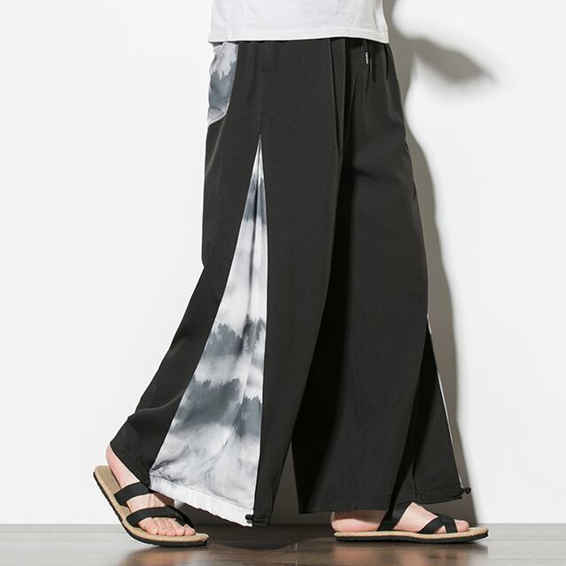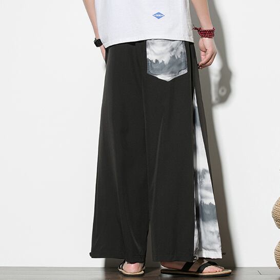 ✪大人気販売中✪【之】★ズボン★ブラック ホワイト チャイナ風 カジュアル 山海柄 kore