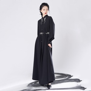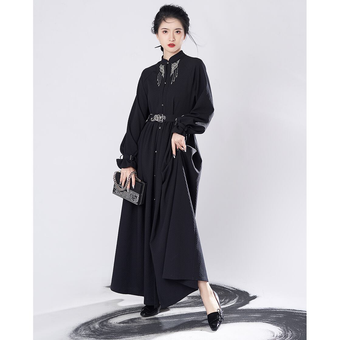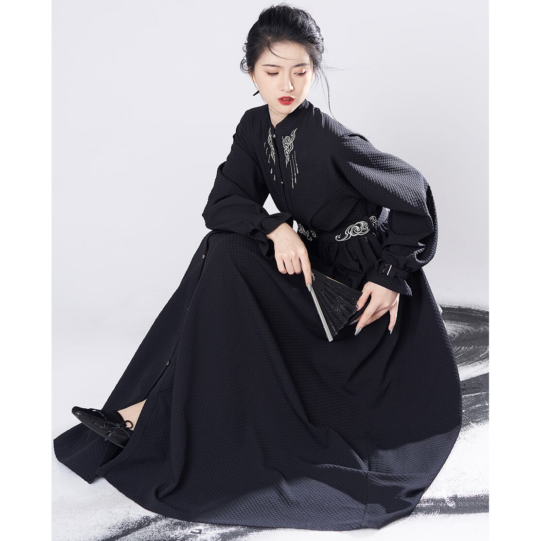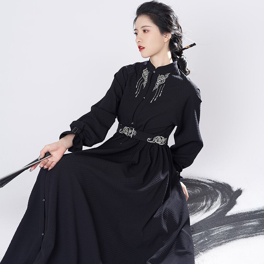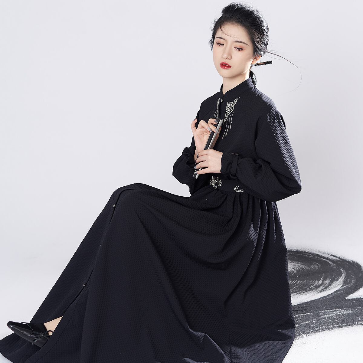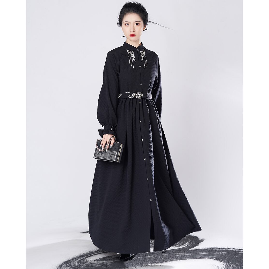 【之】★ワンピース・帰★ブラック チャイナ風 漢服 エレガント 刺繍 花柄 kore