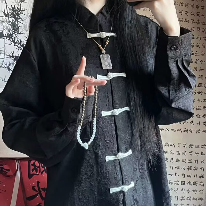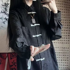 【之】★チャイナ風シャツ★ブラック 中華服 レディース 結び目ボタン kore