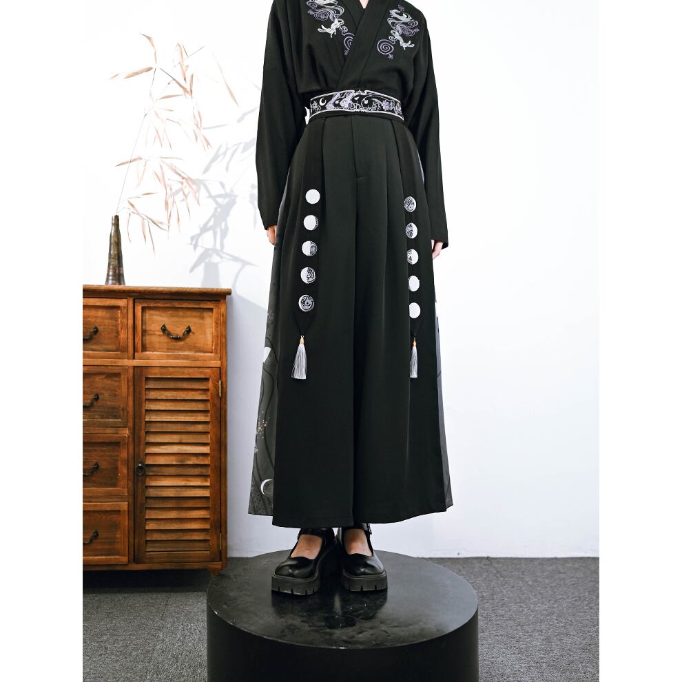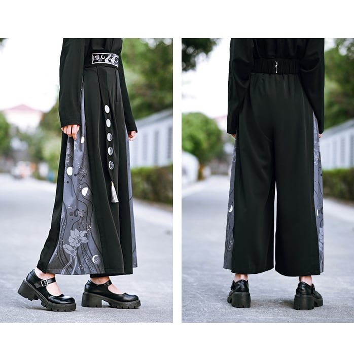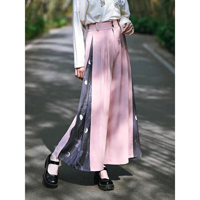 【之x古怪舎】★ワイドパンツ・咬文嚼字★ブラック ピンク デザイン プリント 兎 kore