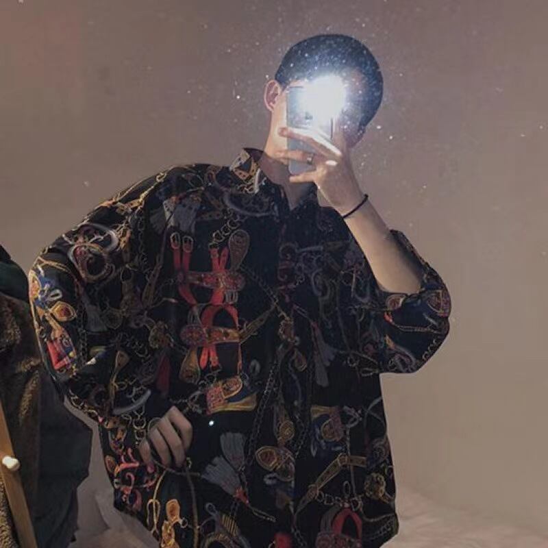 【之】★激安シャツ★ラテ ブラック ホワイト プリント 長袖 合わせやすい poloネック kore