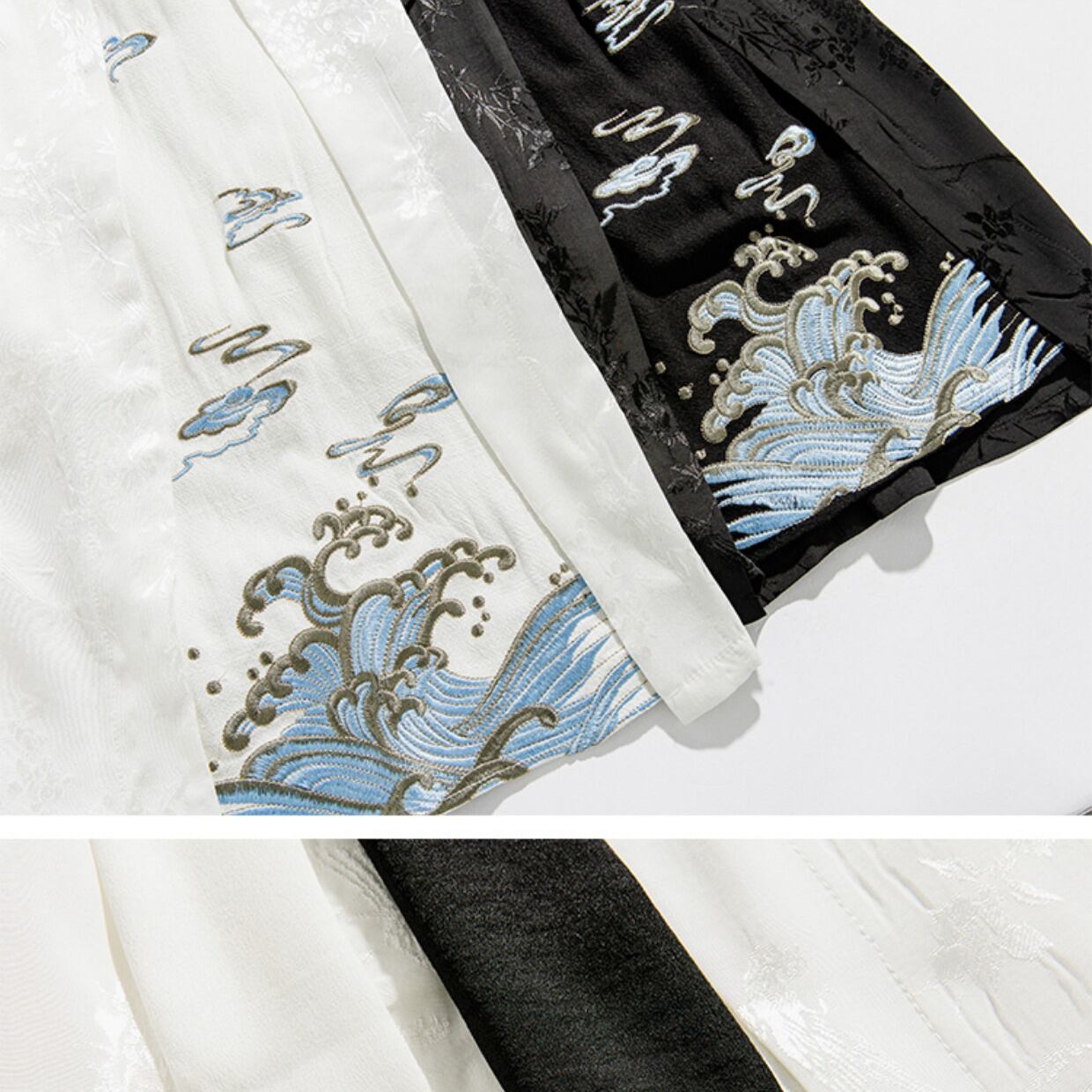 【之】★ワイドパンツ★ブラック ホワイト ワイドパンツ 刺繍 kore