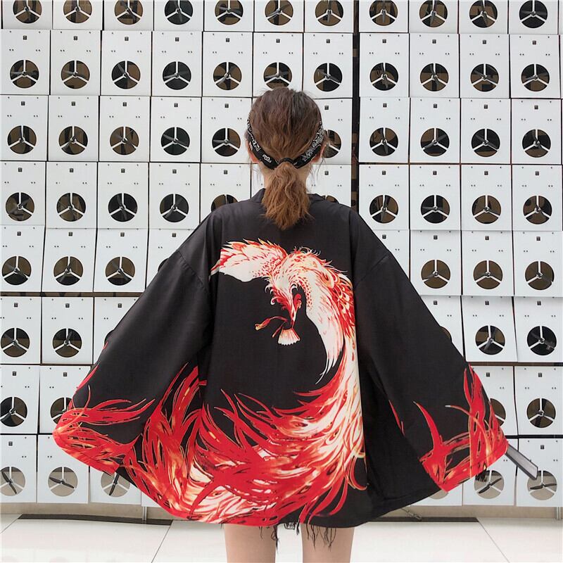 【之】★羽織★ブラック ホワイト チャイナ風 鳳凰柄 vintage kore