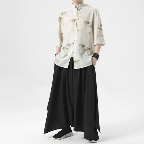 【之】★ワイドパンツ★ブラック 合わせやすい シンプル ファッション 刺繍 | 之