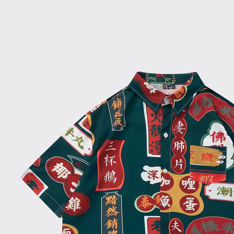 ✪人気商品販売✪【之】★シャツ★グリーン レッド プリント vintage 海辺 合わせやすい アロハ ハワイ 夏祭り | 之