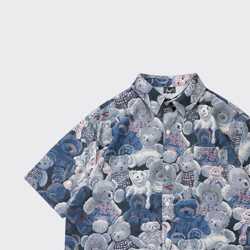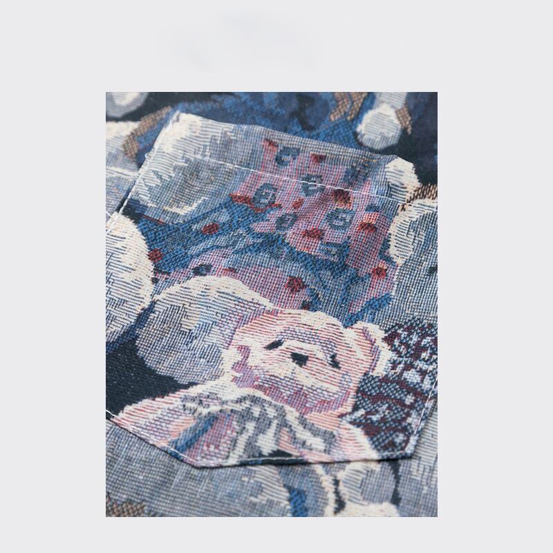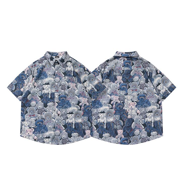 【之】★シャツ★ブルー プリント パンダ柄 vintage 海辺 合わせやすい アロハ ハワイ 夏祭り 熊柄 | 之