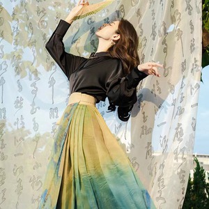 【之】★チャイナ風シャツ/スカート★ブラック 中華服 レディース 山水