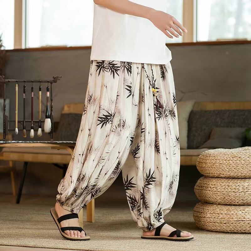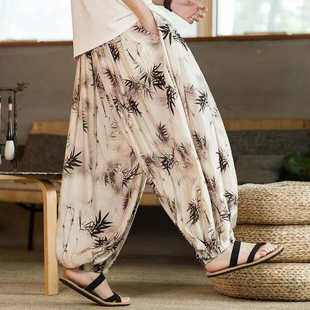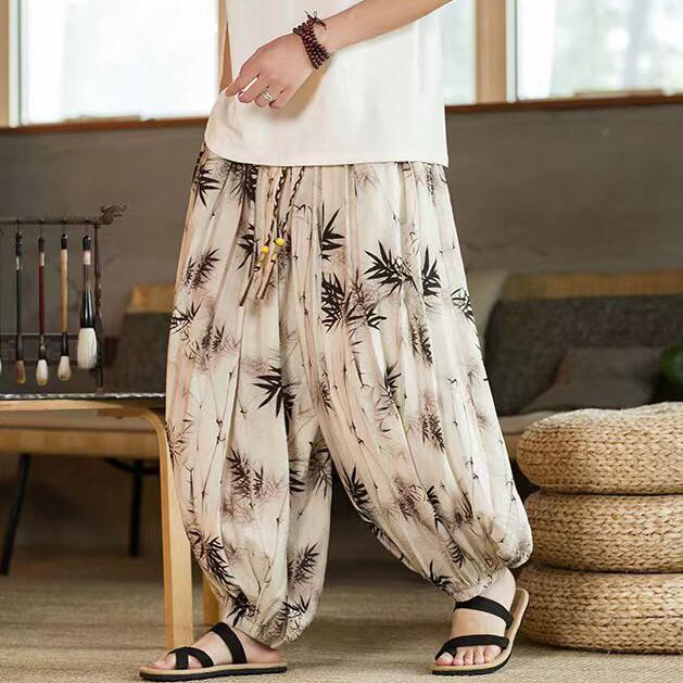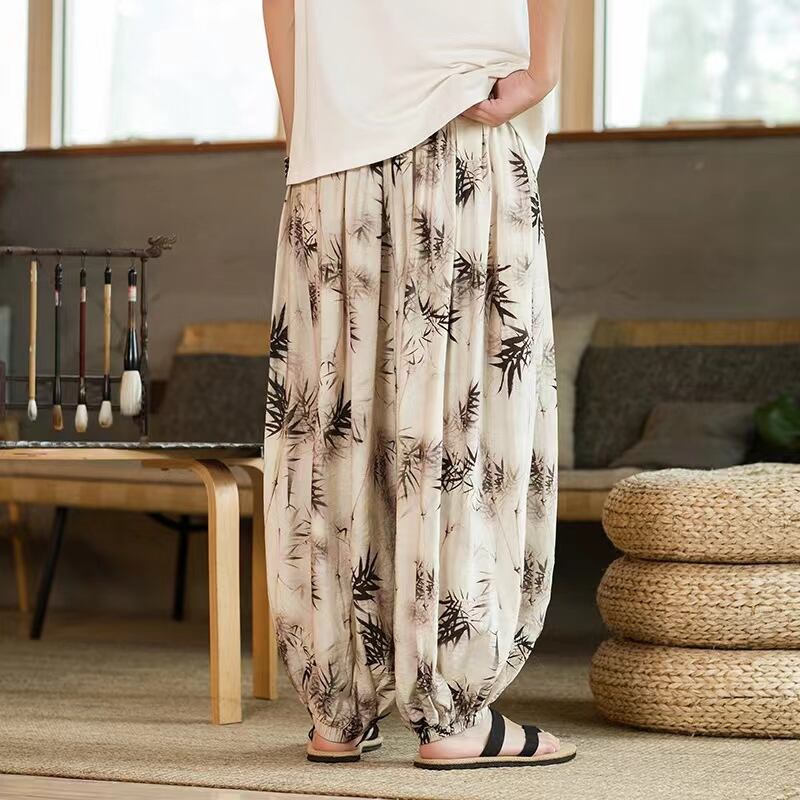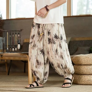 【之】★チャイナ風ワイドパンツ★麻色 竹柄 | 之