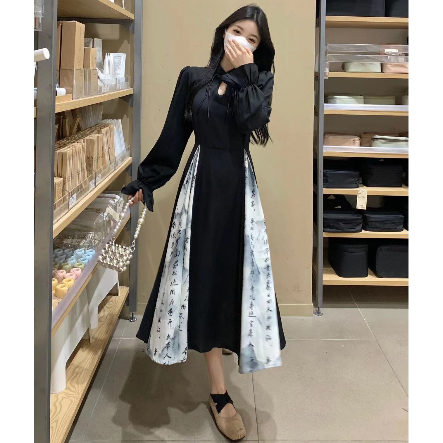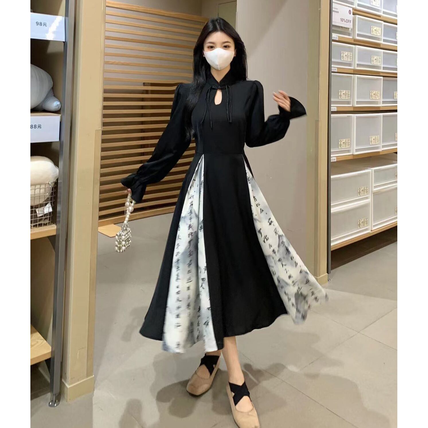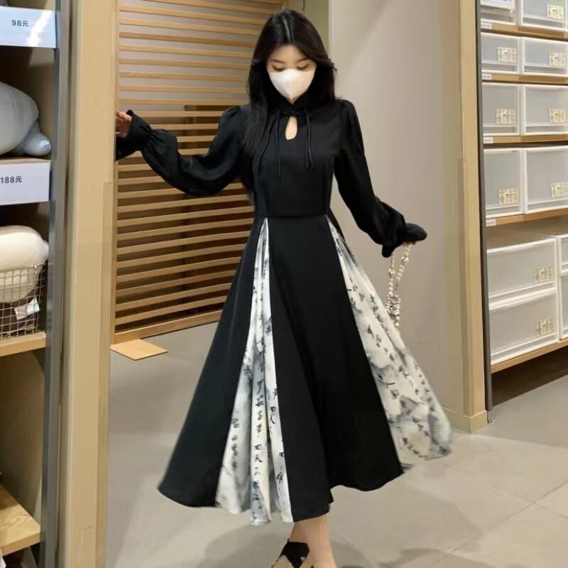 【之】★チャイナ風ワンピース★ブラック 二次会 入学式 卒業式 セクシー 結び目ボタン 漢字