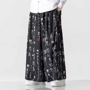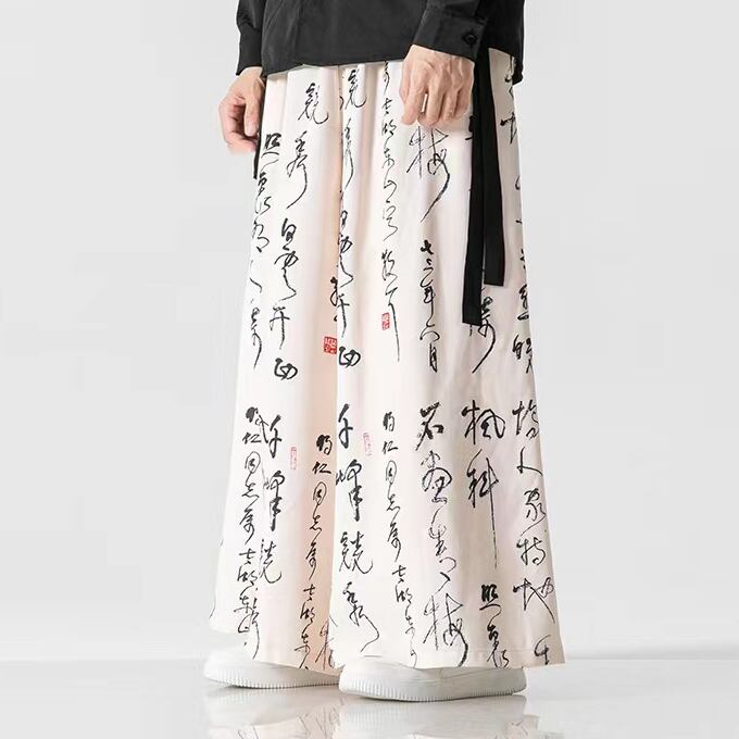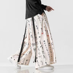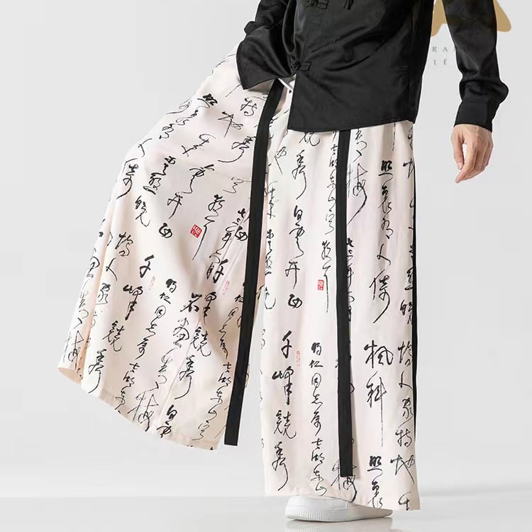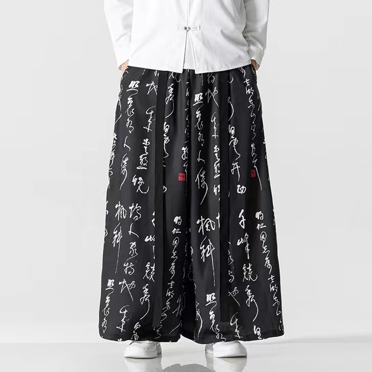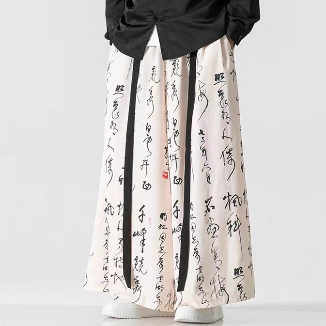 【之】★ワイドパンツ★ブラック オフホワイト 中国ファッション チャイナ風 ガウチョ 漢字