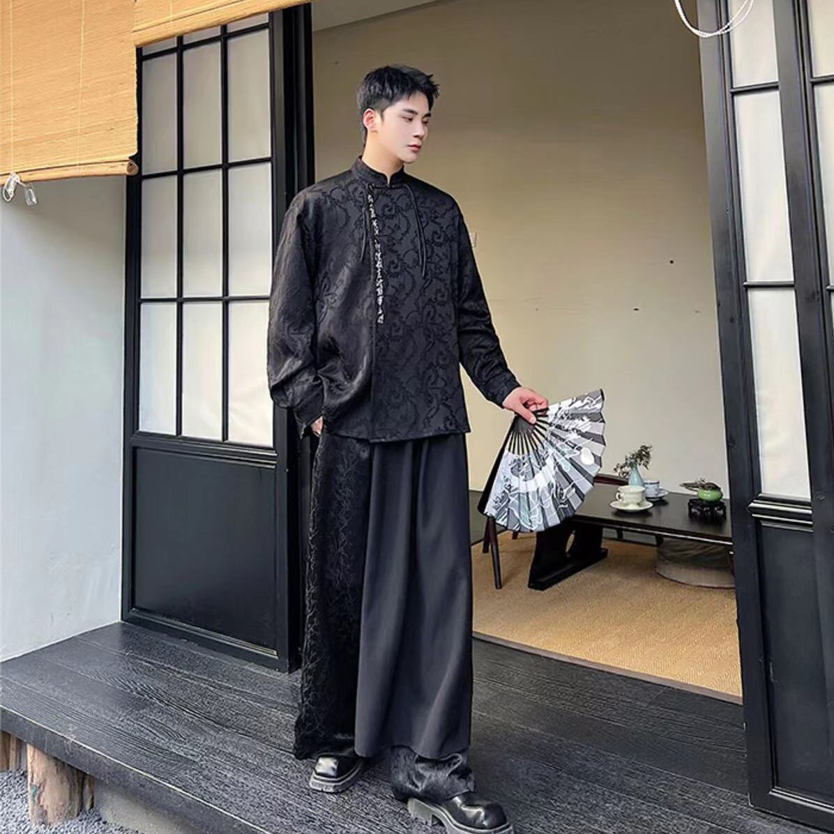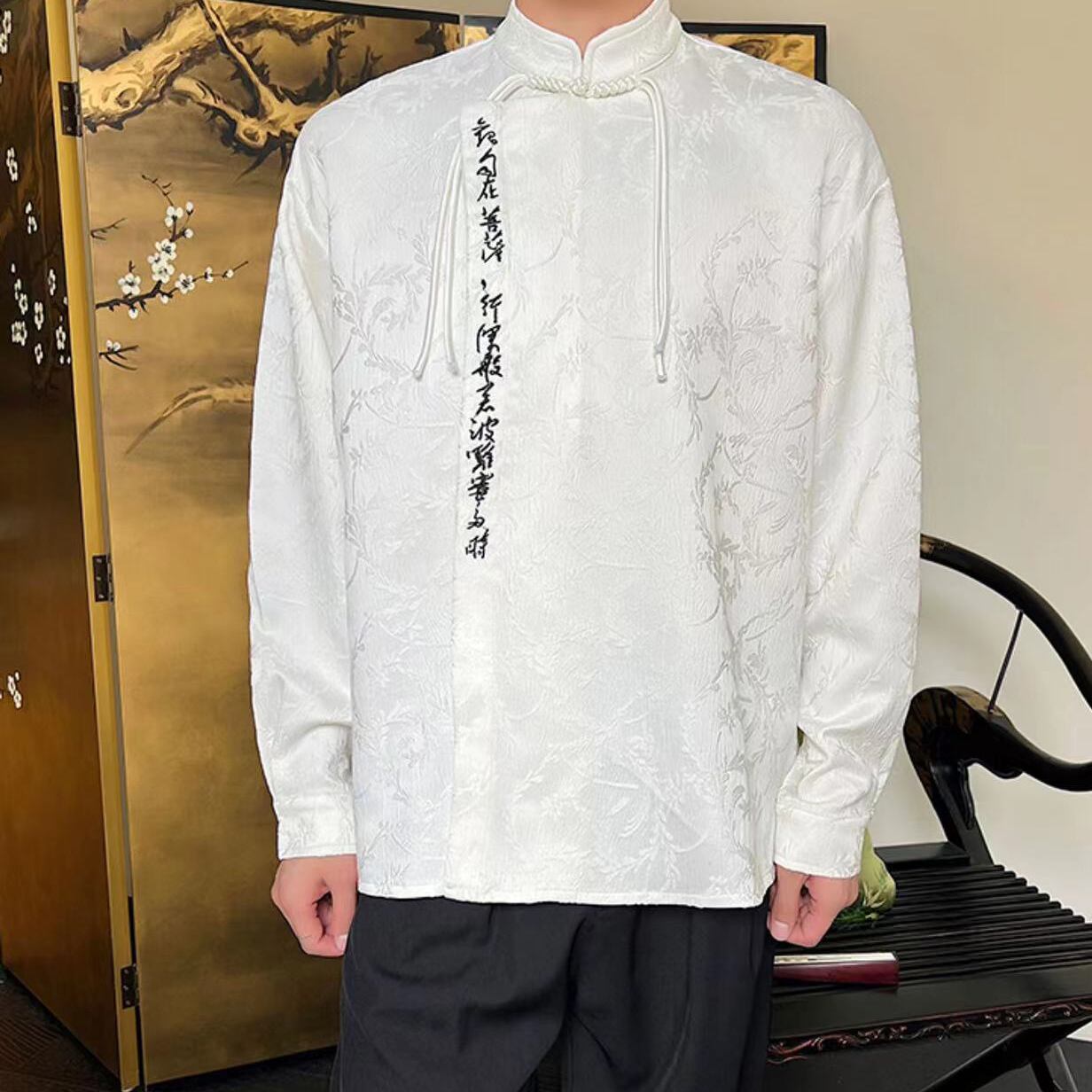 【之】★シャツ★ブラック ホワイト 中国ファッション 合わせやすい チャイナ風 漢字 刺繍
