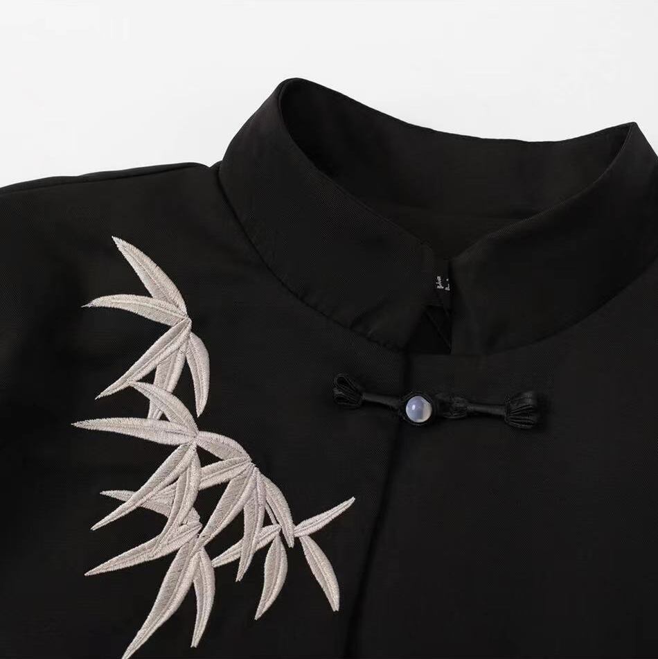 【之】★チャイナ風コート★ブラック 中華服 レディース 結び目ボタン 竹 刺繍