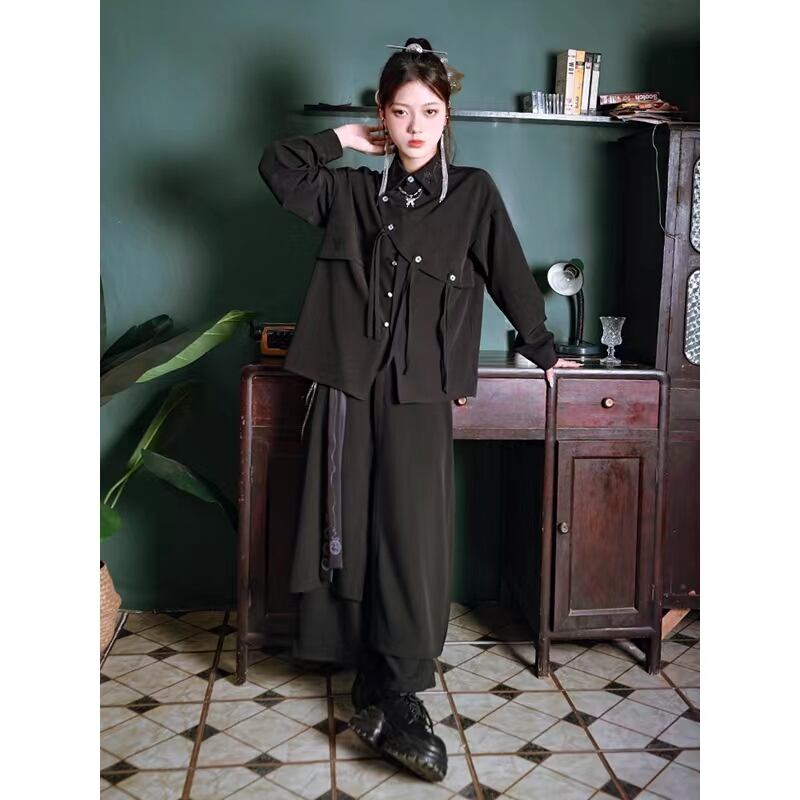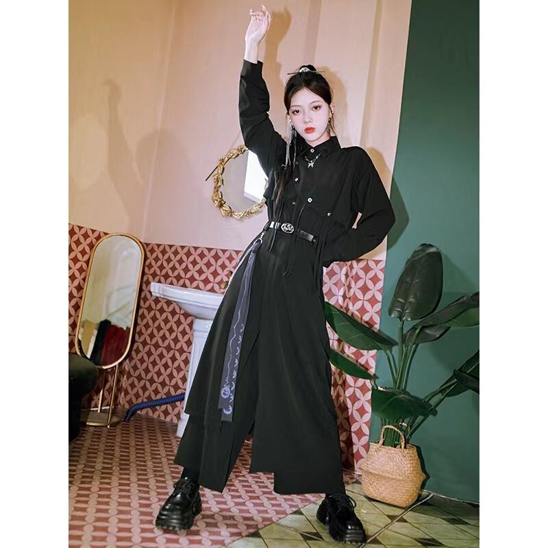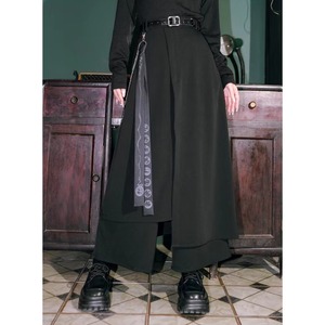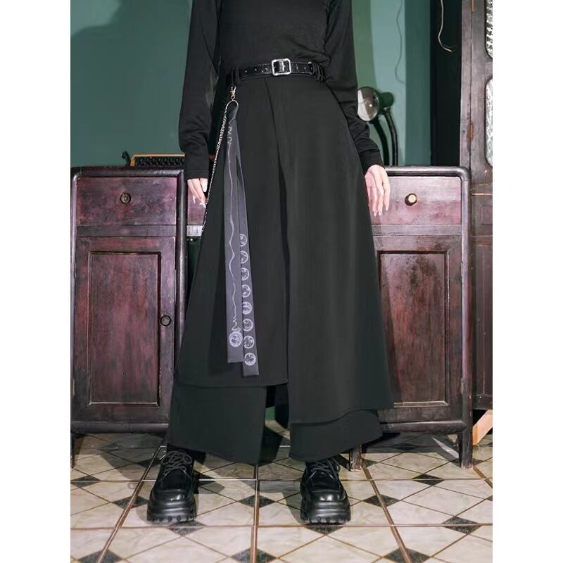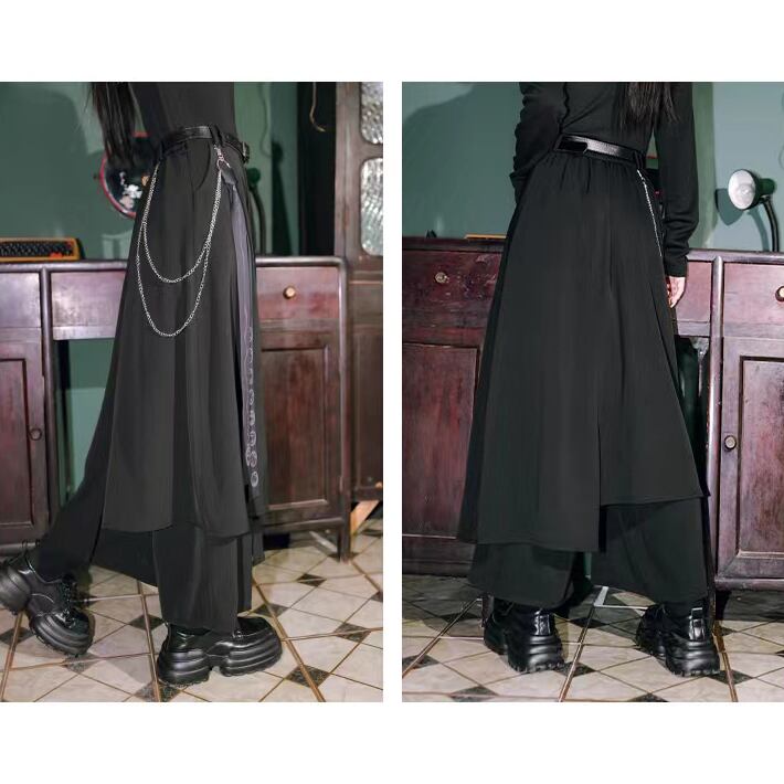 【之x古怪舎】★ズボン・金烏★ブラック 暗黒風 パンク風 ワイドパンツ/ガウチョ プリント