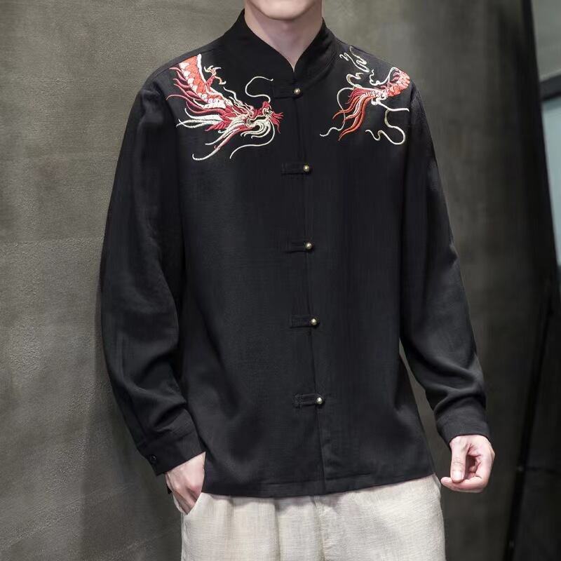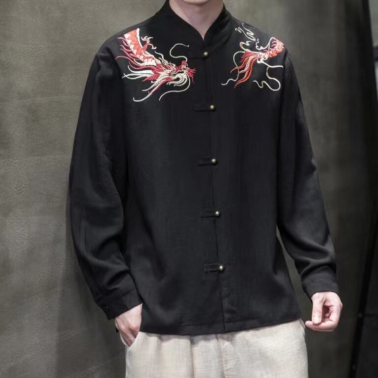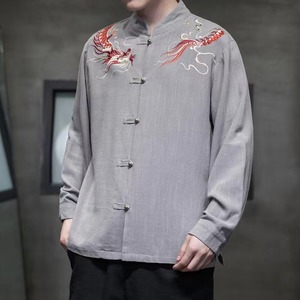 【之】★シャツ★4色入り 中国ファッション 合わせやすい チャイナ風 結び目ボタン 龍柄